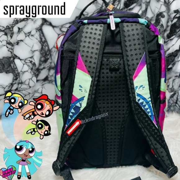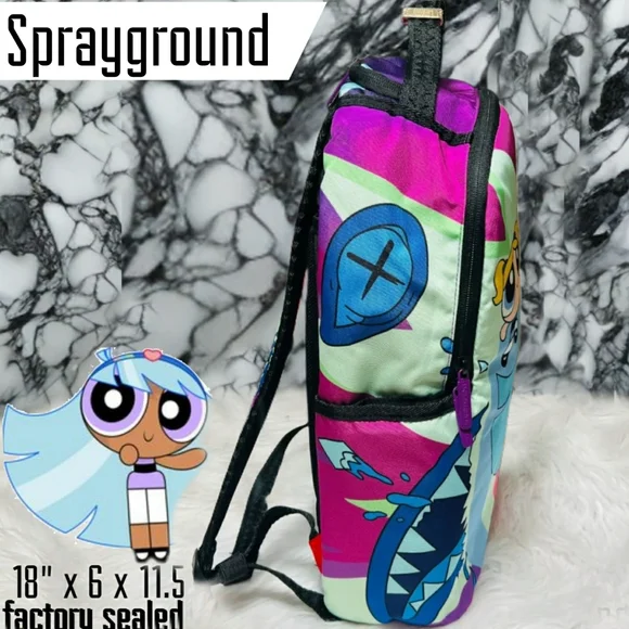 Last One.Sprayground Powerpuff Girls Puff Girl Shark Backpack NEW 18 x 6 x 11.5900DD Polyester FabricMade to be strong and tough! Specifically produced used ocean water bottles that are respun into a soft smooth fabric! 💙Blue Pink PurpleGirlsPowerpuffPPGBACKPACKtravelschoollimited editiondead stock rare
