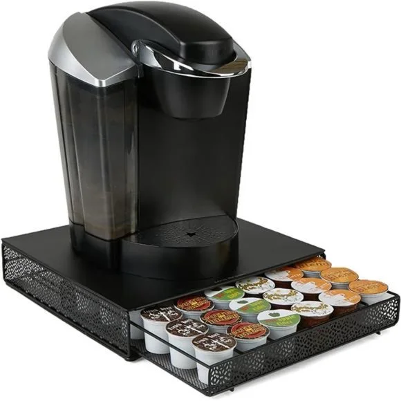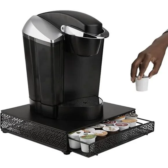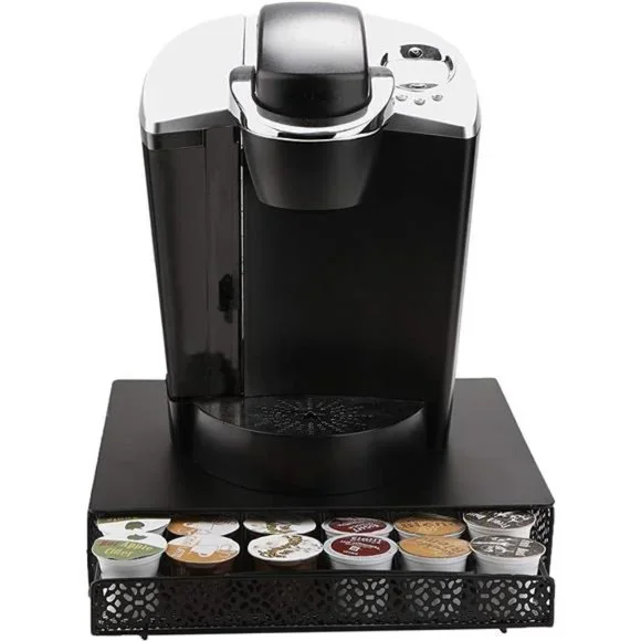 -SAVE TIME IN THE MORNING: Making coffee shouldn’t have to be a frantic scavenger hunt. So forget racing through your kitchen drawers or cabinets every morning, desperately scrambling to find the right blend before you have to get out the door. Everything you'll need to make the coffee you want is perfectly organized for you here and is always on time.-THE PERFECT SPACE SAVER: Keep all 36 single coffee servings in one place. this pod holder easily stores them all in three drawers. Each drawer holds 12 coffee pods, allowing you to neatly organize your coffee and find them according to your taste, brand, or mood.-OVER 4, 000 5 STAR REVIEWS: The proof is in the pod! We have over 4, 000 5-STAR reviews, proving that we provide the best pod storage solution on-EASY TO CLEAN: Don't let spills or stains get in the way! Coffee stations can be messy, but the MIND READER 'MTRAY' coffee organizer is easily cleaned in just a few wipes. The top surface and inside drawers can be wiped effortlessly with a cloth or paper towel while the black color hides any tough stains.-RELIABLE, AFFORDABLE, TRUSTED: The world of pod storage is a coffee cup filled with questionable ingredients. You can never be truly sure what you're going to get. But there is one coffee capsule holder that is reliable in construction, affordable in price, and that's the MIND READER 'MTRAY'.-SPECIFICATIONS: Color: Black | Material: Metal | Dimensions: 13.39 L x 12.99 W x 3.15 H