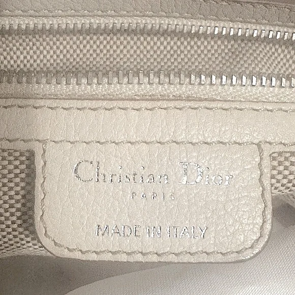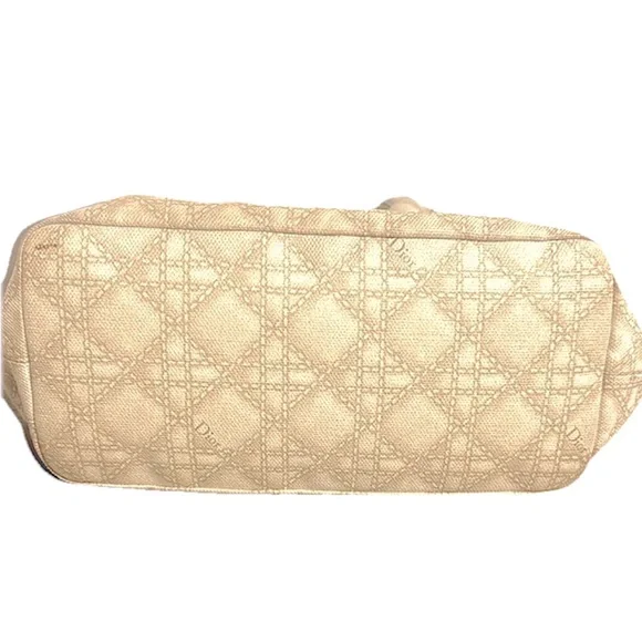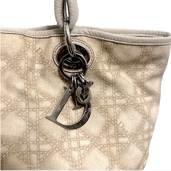 Authentic Christian Dior Tote Bag Canvas Leather Christian Dior toteFeatures: Neutrals Canvas PrintedSilver-Tone Hardware Dual Shoulder Straps Leather Trim Embellishment Canvas Lining & Three Interior Pockets Snap Closure at Top Measurements: Shoulder Strap Drop: 9" Height: 11.75" Width: 20.75" Depth: 7" Wear: exterior stain on bottom corner, hardware tarnishing, leather wrinkling, minor scratches to hardware due to age. Elegant Dior tote bag in beige. Features signature pattern and silver charm.Please see photos for details as they are part of the description✨Send me an Offer✨All of the items I sell are pre owned unless stated otherwise and may show signs of age, wear or need cleaning. Please manage expectations in relation to condition on preloved items. Carefully review the photos and description, please request any additional information or photos prior to your purchase or offer.