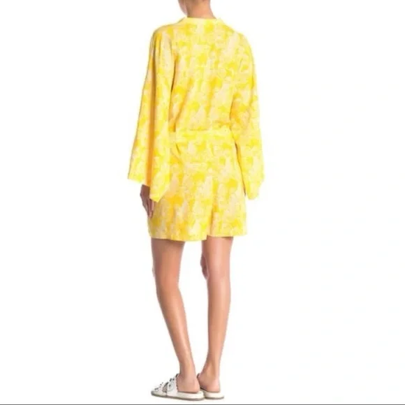 Free People Printed Linen Blend Romper. Split Collar. Front Hook & Eye Closure. Long Sleeves. Removable Waist Tie. 1 Side Pocket. Linen Blend Construction. NWT / New with Tags. Great Condition. No Stains or Rips. A printed exterior, longsleeves, and 1 side pocket accentuate this summer ready romper. 36" length& 2.5" inseam(0436)