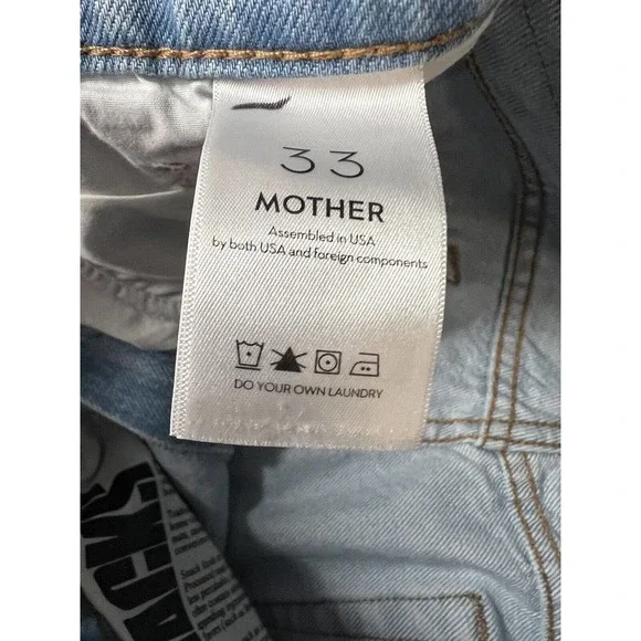 MOTHER SNACKS! High Waisted Twizzy Skimp Jeans Size 33 New.Fabric: Heavyweight, non-stretch denimFading and whiskeringHigh-waistedFull lengthButton closure5-pocket stylingShell: 100% cottonWash coldA part of the label's SNACKS collection, these MOTHER jeans are crafted in rigid 100% cotton and take cues from the throwback silhouettes of the '80s and '90s with a super high rise and faded wash.Waist 16 inches acrossHips 22.5 inches acrossRise 13 inchesInseam 33 inchesInked marked jeans label tag to prevent fraudulent retailer returns.