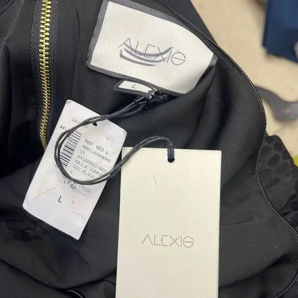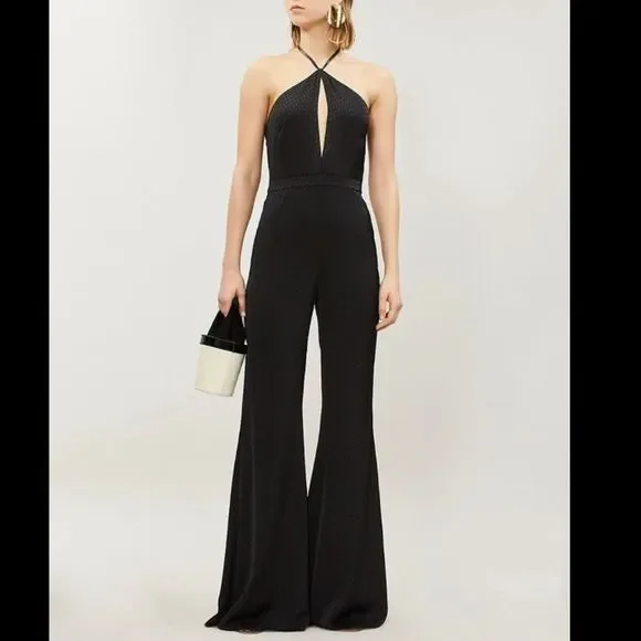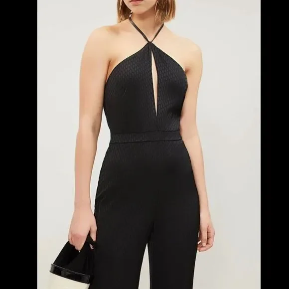 New with defectsZipper is broken can be easily fixed hence the heavy discount Size L$524Great deal reasonable offers DetailsAlexis crepe jumpsuitExposed self-tie fastening at backHalterneck, V-neck, sleeveless, all-over graphic pattern, satin piping trims, gold toned-hardware, wide-leg, fully lined56% polyester, 44% viscose; lining 95% polyester, 5% elastaneDry cleanTrue to size