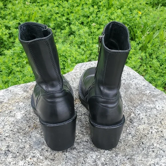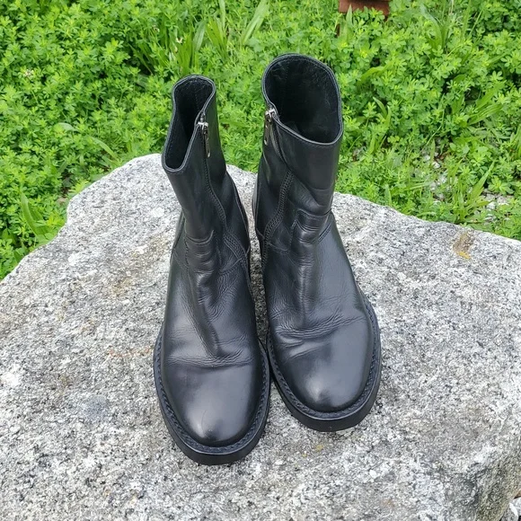 Step out in style with these sleek black leather Ann Demeulemeester ankle boots. Perfect for any occasion, they offer both comfort and elegance.Labeled size is 36, which is equivalent to USA Women's Size 6, per charts.Good used condition overall with ordinary wear. Please see all photosHeels were replaced by a cobbler in the Spring of 2025.