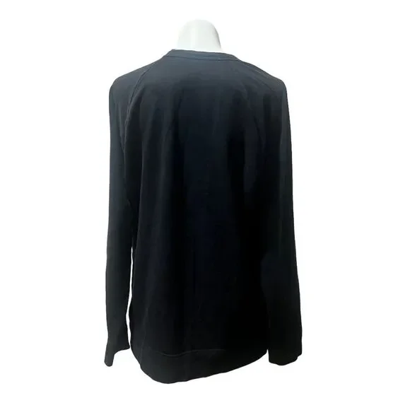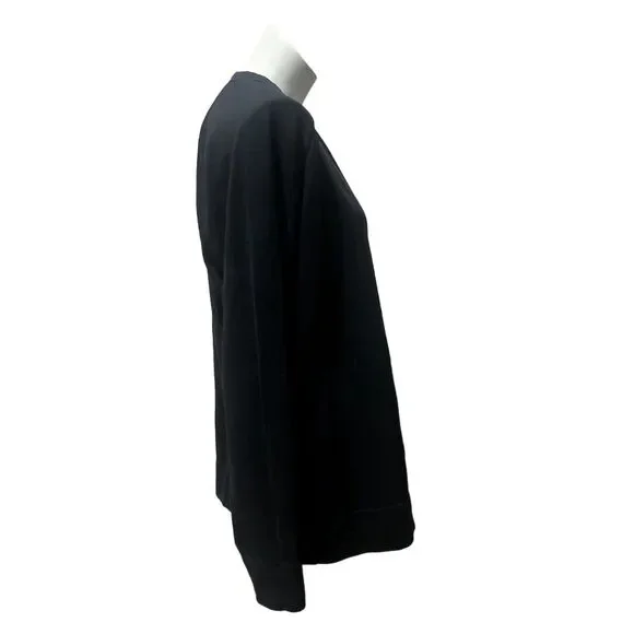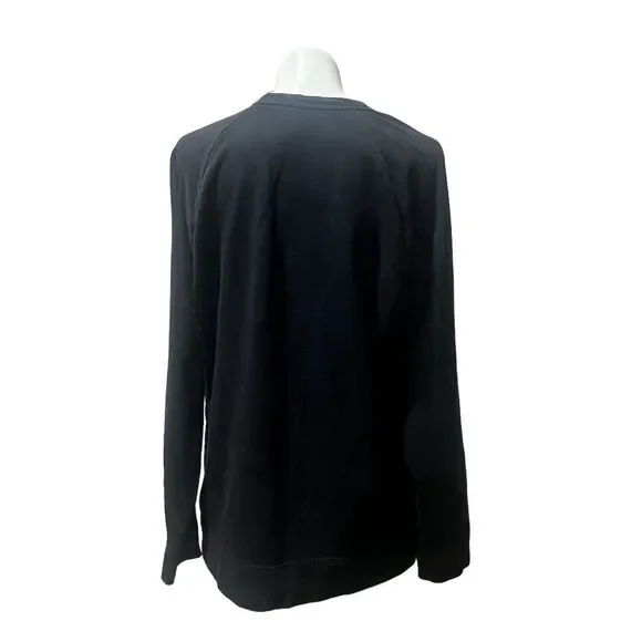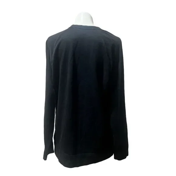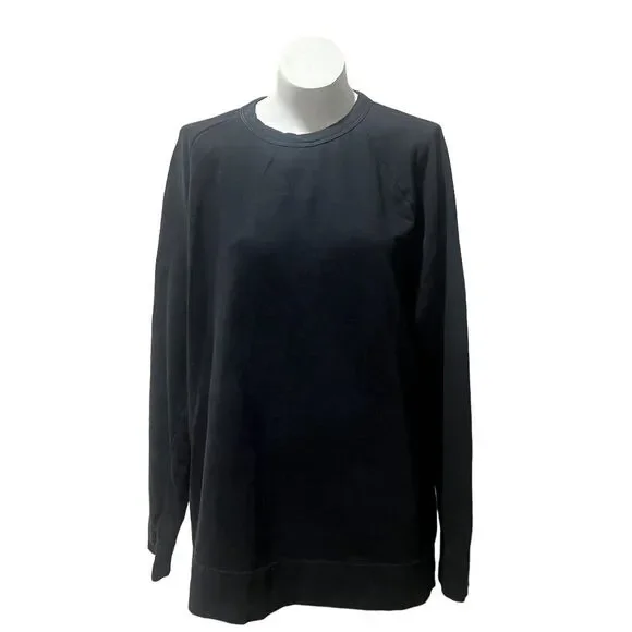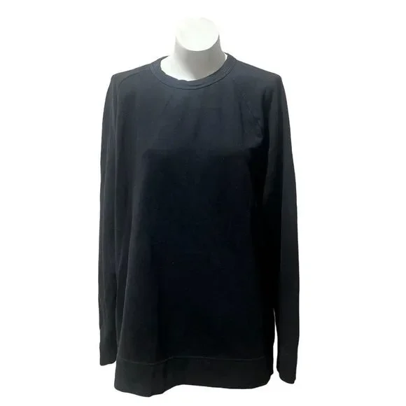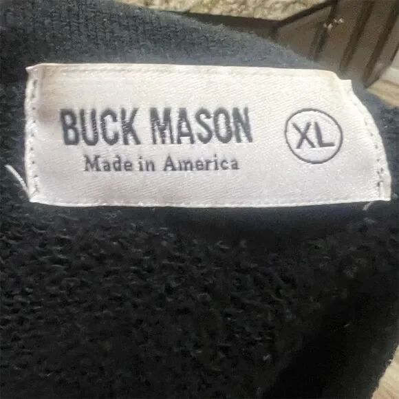 The Buck Mason pullover sweater is designed for men and comes in a relaxed fit, perfect for casual occasions. It features a crew neck and long sleeves, crafted from soft, premium fabric in a classic black color. Made in the United States, this sweater is a size XL in standard sizing, ideal for everyday wear or laid-back gatherings. The sweater is pre-owned.