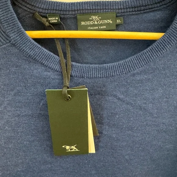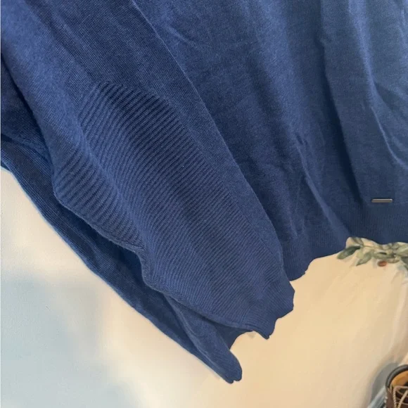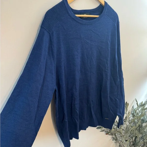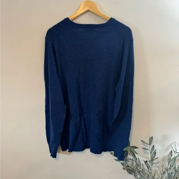 This sweater updates the classic crew with ribbing details along the shoulder and forearms of the sleeve. Soft to the touch, it's crafted from premium long-staple 100% Extrafine Merino Wool, and knitted in a sporty raglan sleeve. Knitted in a light weight gauge ideal for layering.Brand new with tags, MSRP $198Tagged and XL, measuring 23” pit to pit, 29” in length.39