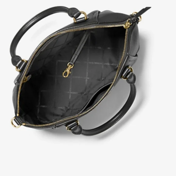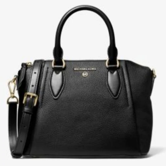 Designed in rich pebbled leather, this Sienna satchel will quickly become a go-to in your handbag repertoire. Organize your essentials in the roomy, pocketed interior with a secure,top zip fastening, they'll stay safely stowed. This bag is equally chic worn crossbody or carried by the top handles. This Satchel is 100% leather from tanneries meeting the highest standardsof environmental performance.This bag features:Exterior details: Gold-tone hardwareMeasurements Approximately 13"W X 9"H X 5.5"D, Handle drop: 5.25"Interior details: back zip pocket, 6 front slip pocketsLining: 100% polyesterZip fasteningThe Michael Kors Sienna purse is perfect for women who want a high-quality, fashionable accessory.Excellent preloved condition!!