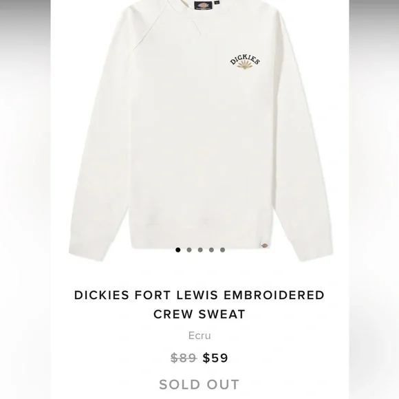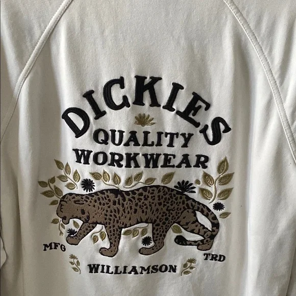 Add a retro touch to your off-duty looks with this off-white Fort Lewis sweatshirt from Dickies. Cut from soft cotton, it's fitted with roomy raglan sleeves and features a bold souvenir-style leopard graphic embroidered at the back - along with the label's heritage script logo at the chest - for a statement finish.• 100% Cotton• Boxy Fit• Ribbed Trims• Embroidered BrandingWorn and very gently used condition. Love this sweatshirt but just doesn’t fit my style anymore!! Back of sweatshirt gets a ton of compliments Size MCream/ecru/ off white