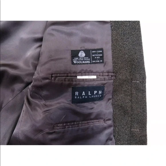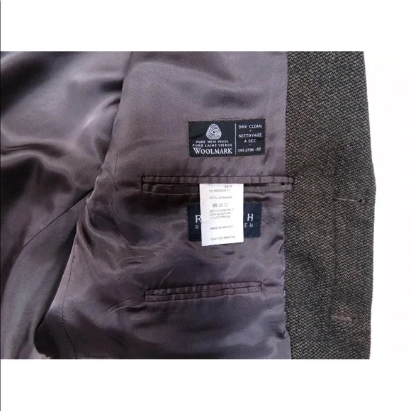 Description: NWOT Ralph Lauren 100% Lambs Wool 3 Button Blazer Sport Coat Jacket-Three button closure -Two front flap pockets-Left chest pocket-Ventless back-Four button cuffsSize (Check Measurements): Mens 44 RegularColor: BrownFabric: 100% lambs woolCondition: New Without TagsItem#: 66133Measurements are in inchesArmpit to armpit: 23"Back bottom of the collar to the hem: 31"Shoulder to shoulder: 20"Shoulder seam to end of cuff: 24 3/4"BUYING VINTAGE·We do our best to thoroughly inspect all items for any visible imperfections i.e., rips, repairs, holes, stains, etc. and note as such.·Please note vintage sizes are not always comparable to today's sizing. Please refer to the measurements in the description for a more accurate depiction of the true size. If an issue should arrive, please contact us prior to leaving a negative as we strive for providing excellent customer service.Please compare your measurements to the measurements provided in the listing description to ensure a proper fit. 62643