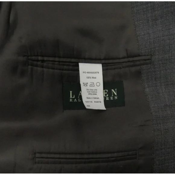 Description: NWOT Lauren Ralph Lauren LRL 100% Wool Gray 2 Button Blazer Sport Coat Jacket -Two button closure-Two front flap pockets-Left chest pocket-Single vented back-Four button cuffs-Notch collarSize (Check Measurements): Mens 48 RColor: GrayFabric: 100% woolCondition: New Without TagsItem#: 65861Measurements are in inchesArmpit to armpit: 25"Back bottom of the collar to the hem: 31 1/2"Shoulder to shoulder: 21 1/4"Shoulder seam to end of cuff: 24 1/4"BUYING VINTAGE·We do our best to thoroughly inspect all items for any visible imperfections i.e., rips, repairs, holes, stains, etc. and note as such.·Please note vintage sizes are not always comparable to today's sizing. Please refer to the measurements in the description for a more accurate depiction of the true size. If an issue should arrive, please contact us prior to leaving a negative as we strive for providing excellent customer service.Please compare your measurements to the measurements provided in the listing description to ensure a proper fit.