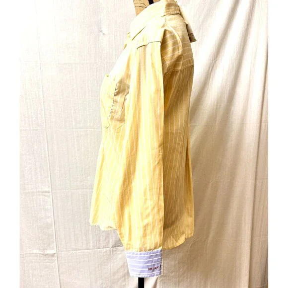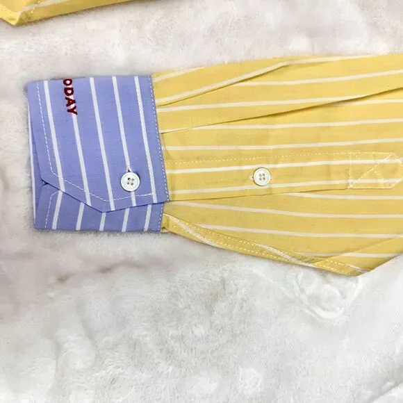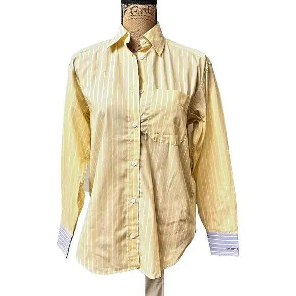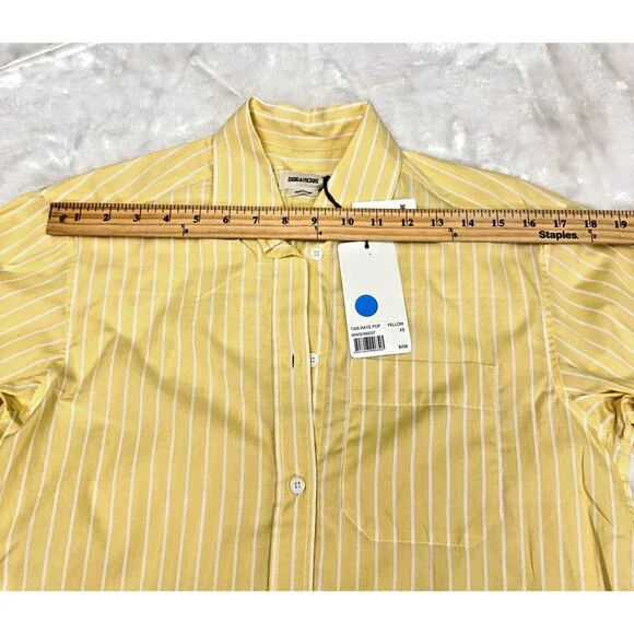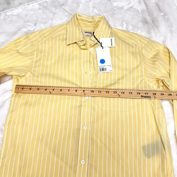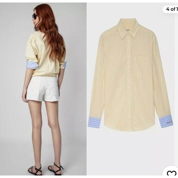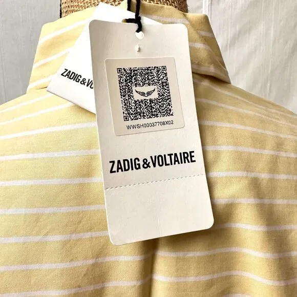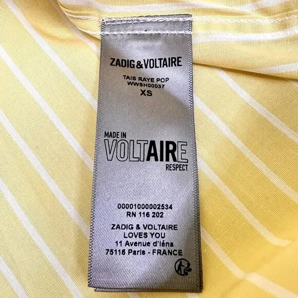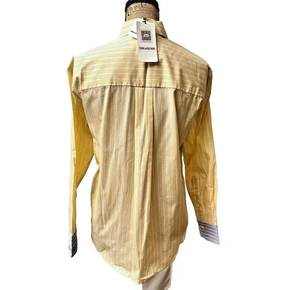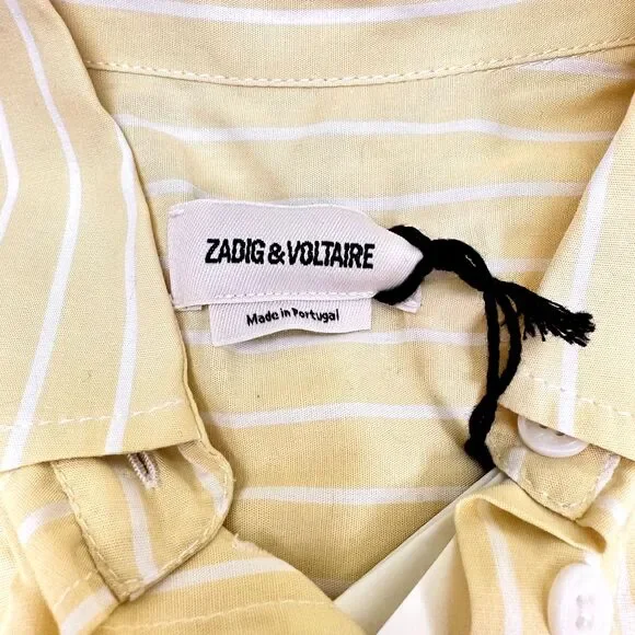 NWT Zadig & Voltaire Tais Raye Pop Shirt Button Up Blouse Top Striped OversizedBrand new with tagSize XS. MSRP $298The essential cotton shirt is reinvented in this finely striped two-tone version, featuring contrasting sleeves and a delicately embroidered "˜Enjoy Today" mantra.- Zadig&Voltaire women"s pink and yellow cotton shirt - Stripe print - Buttoned - Long sleeves - Contrasted buttoned cuffs - "˜Enjoy today" embroidery on cuffsSold out in stores.