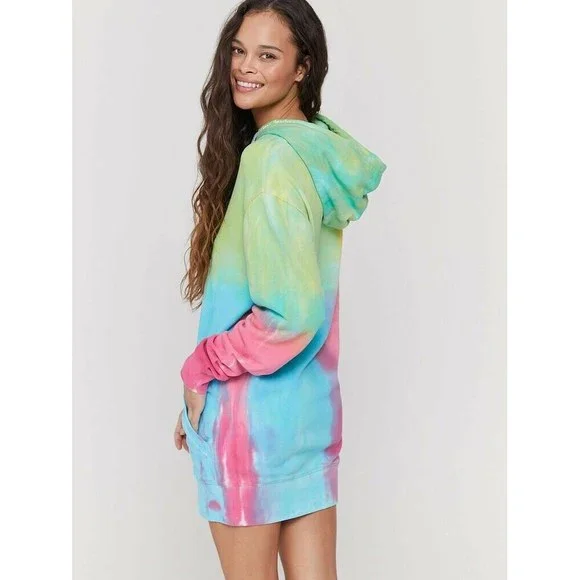 VS VICTORIAS SECRET PINK SPIRITUAL GANGSTER PULLOVER HOODIE DRESS TOP TIE DYE XS