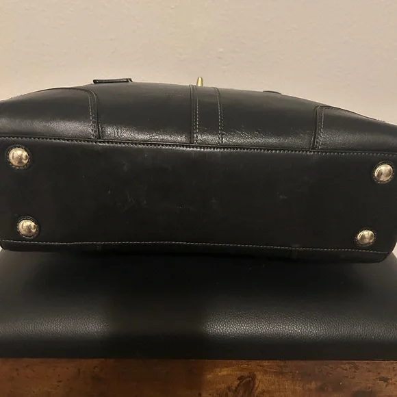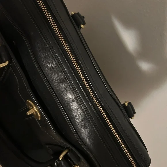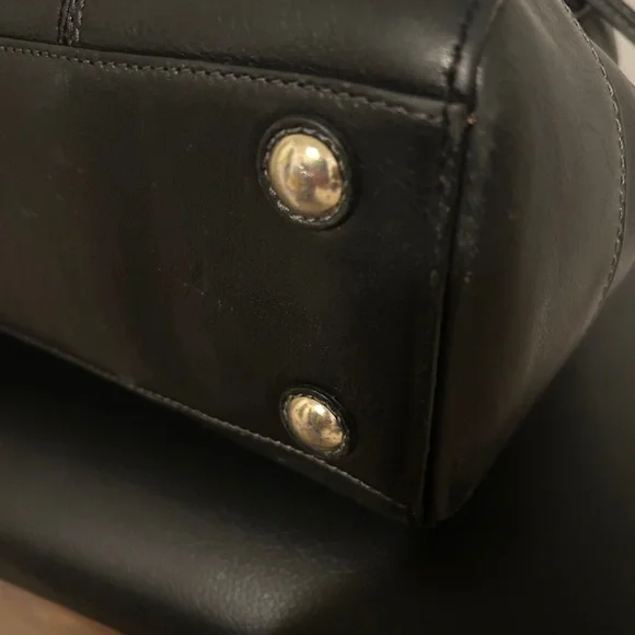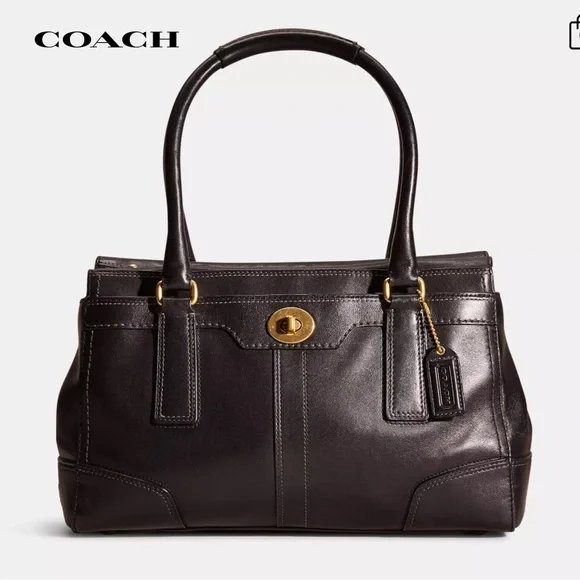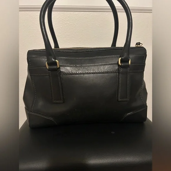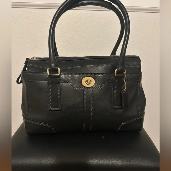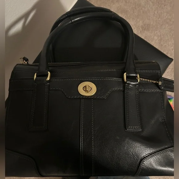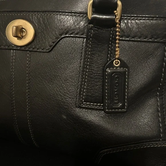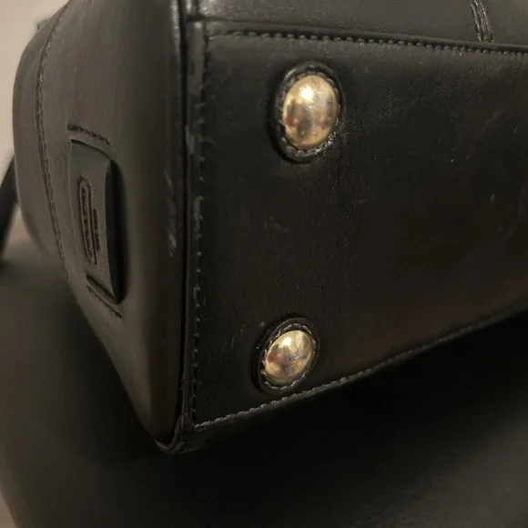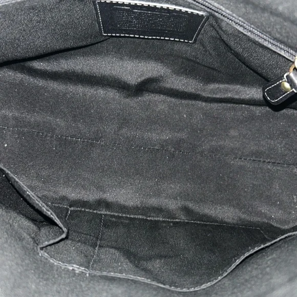 This Coach shoulder bag in black leather exudes sophistication with its sleek silhouette and signature craftsmanship. The rich, smooth leather and minimalistic design make it a versatile accessory for any occasion, while the subtle gold-tone hardware adds a touch of elegance.This bag is in mint condition. Clean inside and out.Looks brand new. Original Coach hangtag.