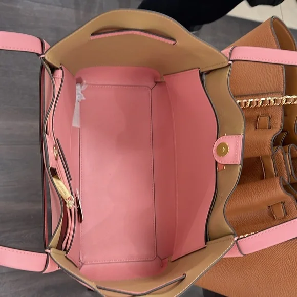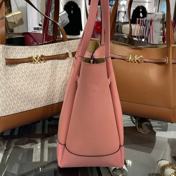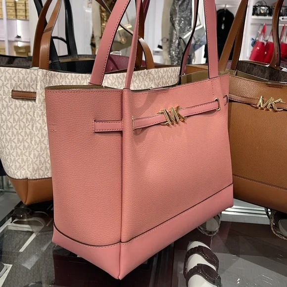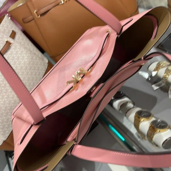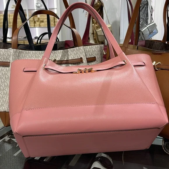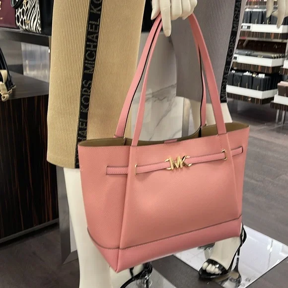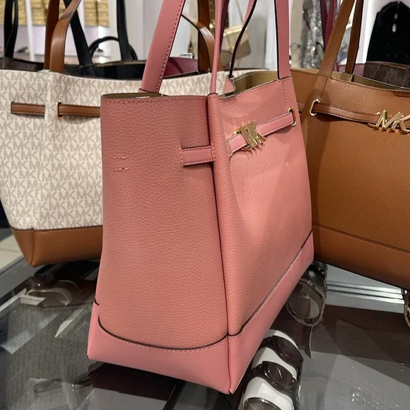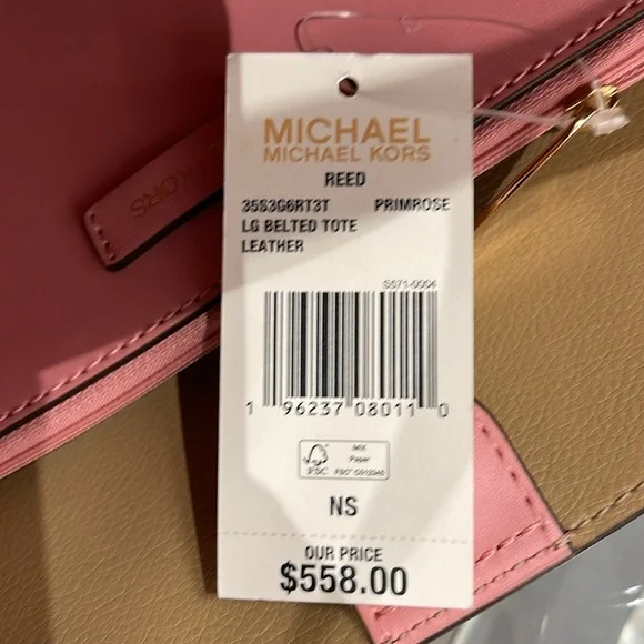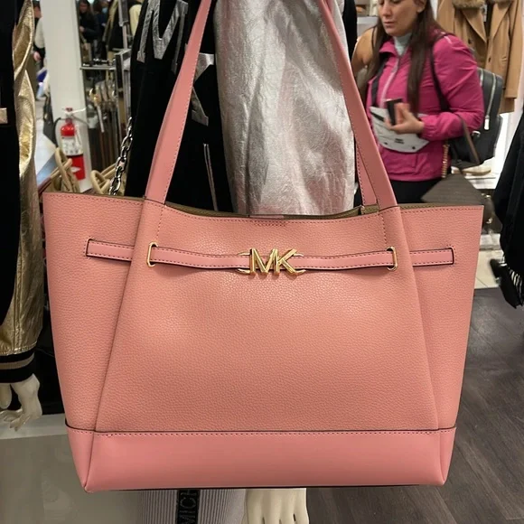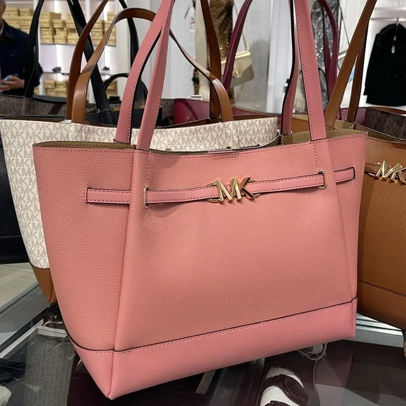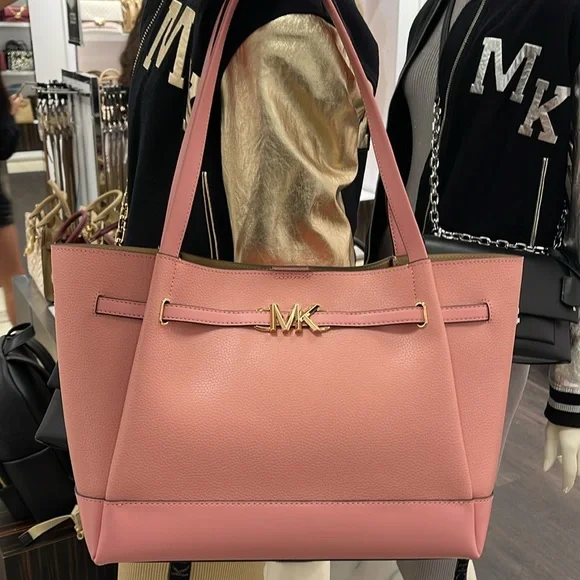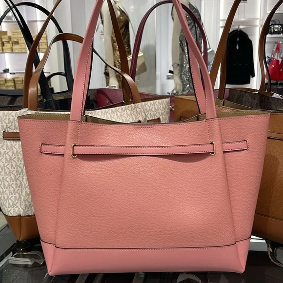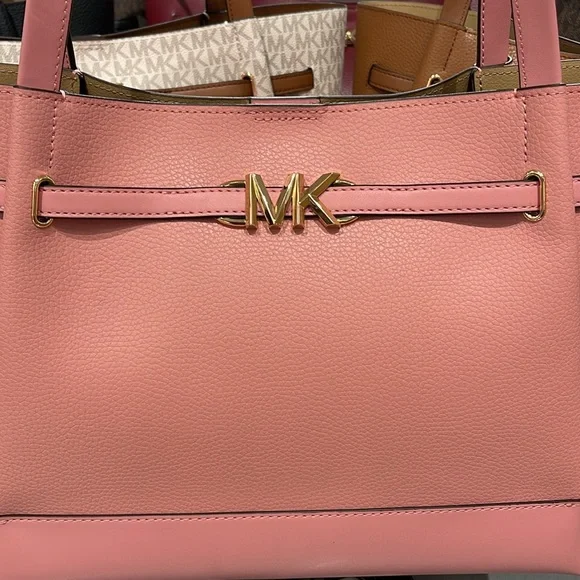 MICHAEL KORSReed Large Logo Belted Shoulder Tote BagPrimrose New with the tag Authentic DESIGNSoftly structured, the Pebble Leather Belted Reed tote strikes the perfect balance between practical and stylish. Designed to carry everything from a tablet to a change of clothes, it has a convenient interior slip pocket and zipped compartment for easy organization.DETAILS.Tote bag• Peble Leather • Gold-tone hardware•16.5"W X 10.75"H X 7"D• Handle drop: 11.5"• Interior details: back zip pocket, front slip pocket• Lining: 100% polyesterSnap fastening•Imported MICHAEL KORSREED35S3G6RT3TLG BELTED TOTELEATHER