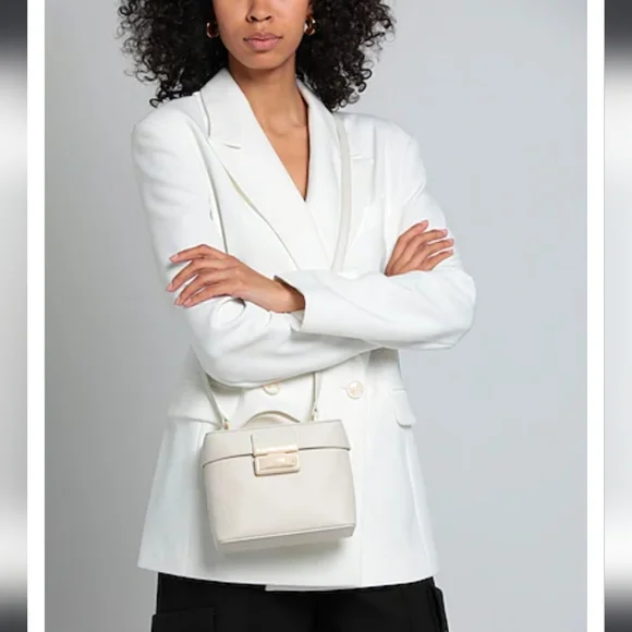 MADE IN ITALY, synonymous with quality and design creativity.COMPOSITION: Soft LeatherMEASUREMENTSHandle drop 22.82 Inches, Depth 3.12 Inches, Height 5.66 Inches, Length of handle 46.8 Inches, Width 7.21 InchesDETAILSsmall, leather, brand logo, solid color, fully lined, framed closure, daytime, contains non-textile parts of animal origin, camera bagThe bag for sale is pink, as shown in the cover shot. Natural color leather is shown in stock photos.Callout, shown in the last photo: teeny smudge that could be wiped off, very difficult to see if not held up close.