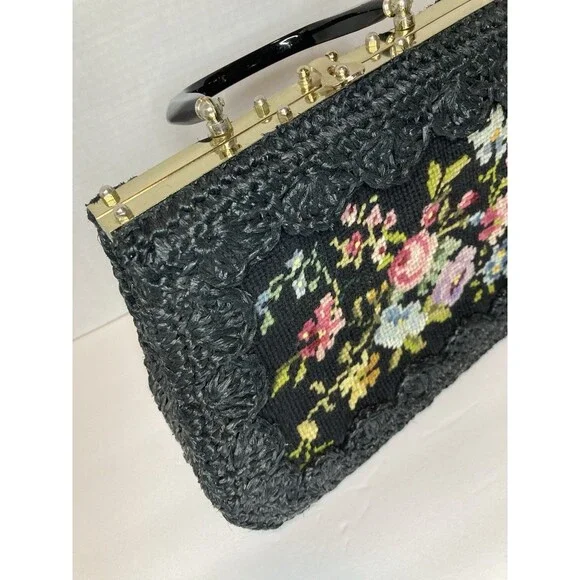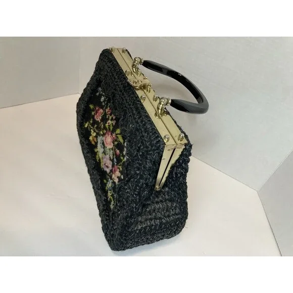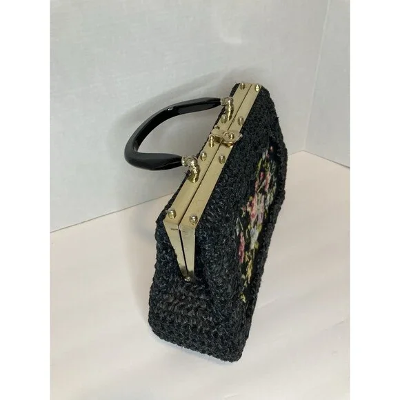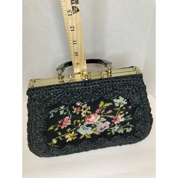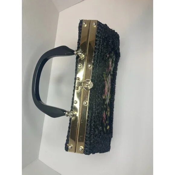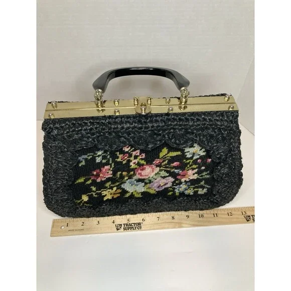 Vintage Tapestry Needlepoint Black Floral Gold Hardware Bakelite Handle Granny Grandma Purse HandbagHandmade in JapanApproximate measurements12Wx8Hx4DShips same to next business day from smoke free home.Thank you for shopping small business. Please check out and follow my store for more awesome finds. New items added daily!Be blessed!