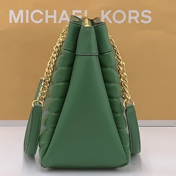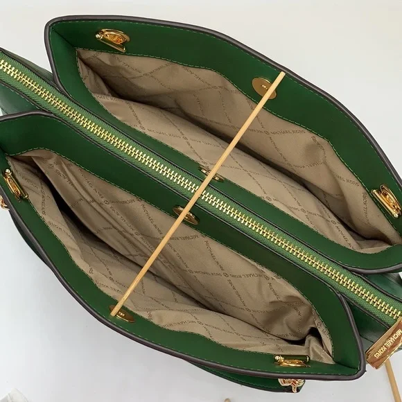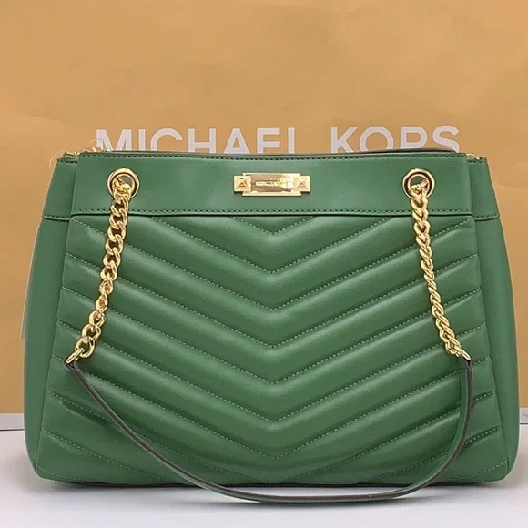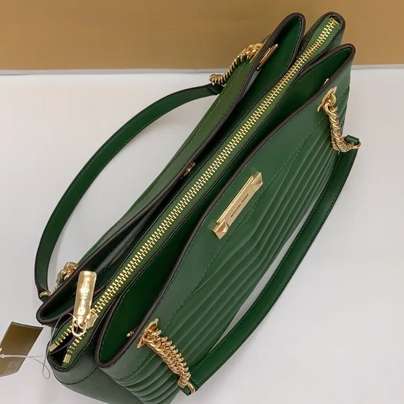 Michael Kors Whitney Women Ladies Medium Tote Shoulder Handbag Bag Purse Fern GreenNWT Authentic APPROX. DIMENSIONS:Length: 13 inchesHeight: 10 inchesWidth: 4.75 inchesColor: Fern Green100% Authentic FEATURES:PVC Material-Faux Non Leather VeganMichael Kors Logo at FrontSnap and Zip ClosureGold Toned Hardware1 Slip-in PocketsChain Strap