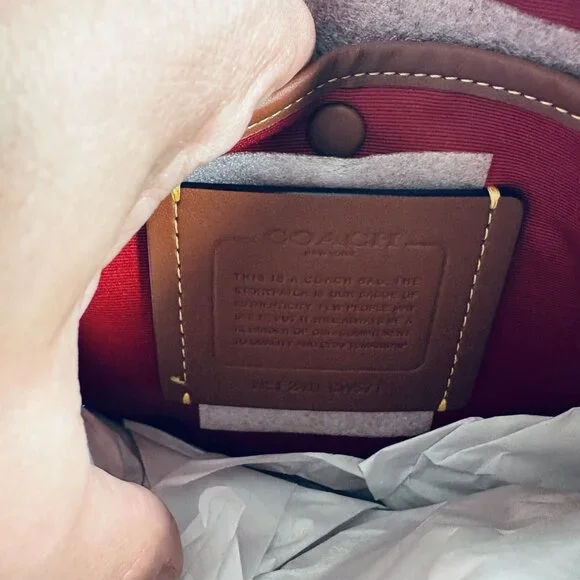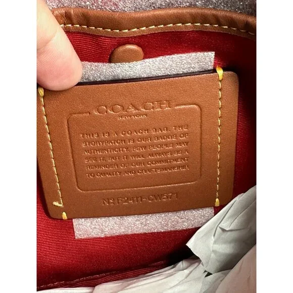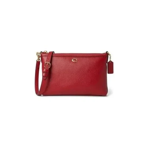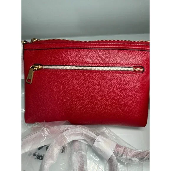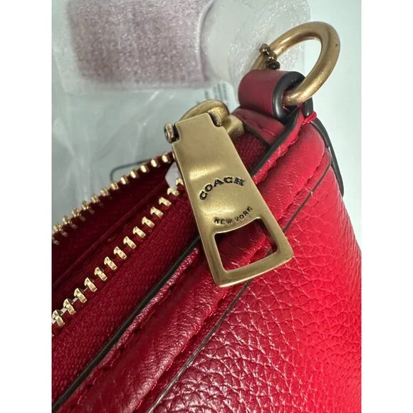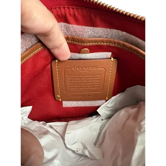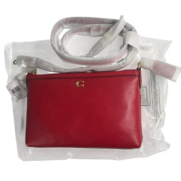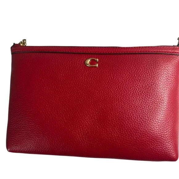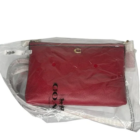COACHCOACH LEGACY Brand New Red Leather Crossbody CW571From COACH, the Legacy Top Zip Crossbody Bag features:* Refined pebble leather * Fabric lining * Inside snap pocket * Zip-top closure * Outside zip pocket * Detachable strap with approx. 21.5" drop for shoulder or crossbody wear * Approx. measurements: 10" (L) x 6.25" (H) x 1.25" (W)New. An imperfection - One stitching on Creed of purse is undone (see photo). This item comes from a pet friendly homeColor in pictures can vary slightly due to lighting and computer screens.