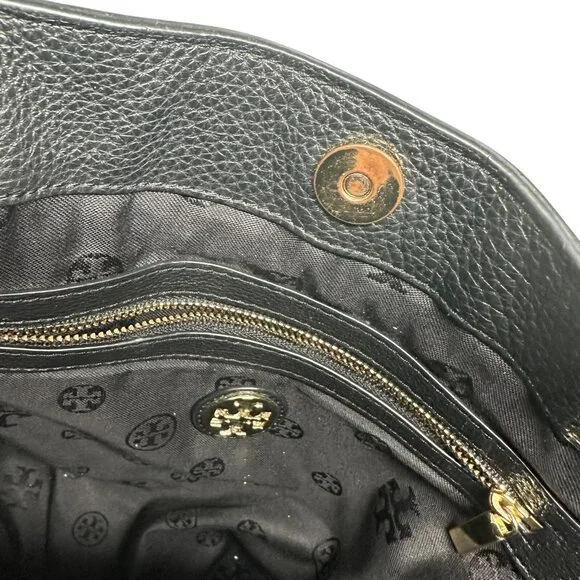 Tory Burch Black Stacked T Book Bag Pebbled Leather Crossbody