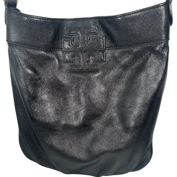 Tory BurchTory Burch Black Stacked T Book Bag Pebbled Leather Crossbodysome wear/scratches/marks due to being pre-owned. See all photos. This item comes from a pet friendly homeColor in pictures can vary slightly due to lighting and computer screens.