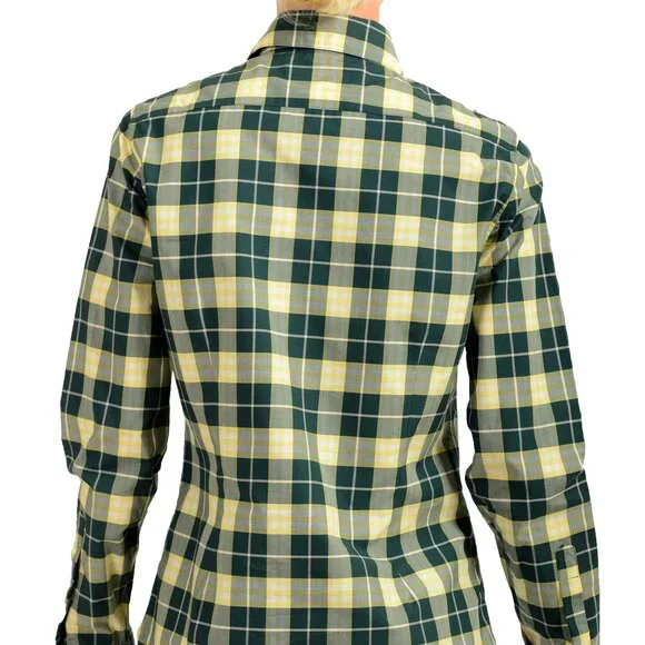 Burberry Women's Dark Cedar Green Plaid Long Sleeve Shirt UK 8 US 6 IT 40Country/Region of Manufacture:ThailandRetail Value: $340.00This is authentic Burberry Women's Dark Cedar Green Plaid Long Sleeve Shirt SKU: BB-8654Model: 106106A6317Material: 100% CottonBust: 19"Sleeves: 24.25"Shoulders: 15.25"Length: 27.25"