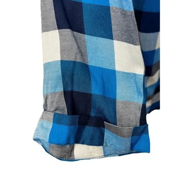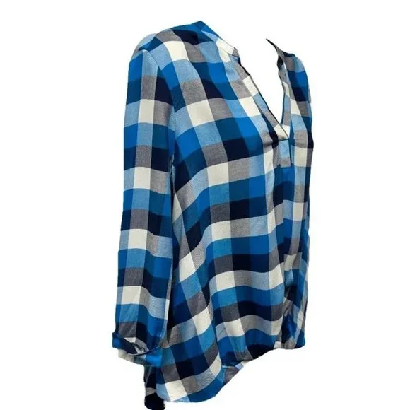 Como Vintage Womens Blouse Blue White Buffalo Plaid Cuff Sleeve Hi Lo Hem S NewNWTBrand: Como VintageSize: SStyle: BlouseMaterial: RayonColor: BlueSecondary Color: WhitePattern: Buffalo PlaidMeasurements laid flat across:Chest: 41"Length of Top: 24.5-29.5"Sleeve length from the top of the shoulder: 18"High low hem17HGSold as pictured. Thanks for looking!