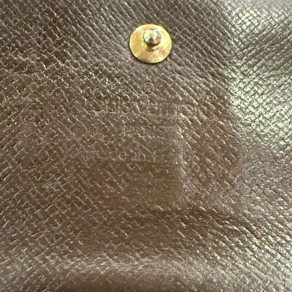Elegant GUC Louis Vuitton wallet. Classic checkered pattern. Secure button closure. Authentic Louis Vuitton Damier Ebene, International Wallet. However, it is a Louis Vuitton and the name itself speaks volumes to her appeal and its standing.Before making your purchase, please review all photos and details carefully. If you have any questions, feel free to reach out.***PLEASE NOTE *** this wallet has been stained and sealed internally to bring back the aesthetics to her. Item Details:• Model: Portefeuille International Wallet• Origin: Made in France• Date Code: Unable to ascertain fully due to the aforementioned staining and sealing. But slightly visible in photo.• Color: Brown• Pattern: Checkered• Material: Canvas - LeatherCondition:Overall, the item is well-maintained, retaining its structure. As a pre-loved item, signs of use are expected, but it remains beautiful and in relatively good condition. In summation she should last an extremely long period of time. Reiterating- Important Notes:- Offers are welcome! However, low offers will be countered with the best available offer.- No Filters Used –these photos are taken under lighting, but slight variations in color may occur due to different screens and lighting conditions.- Pre-loved Means Pre-owned – I kindly ask that you please manage your expectations, as I may have missed some minor details.