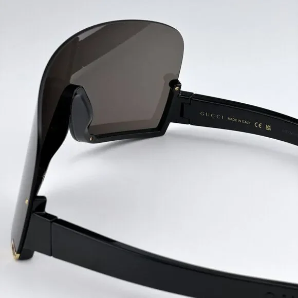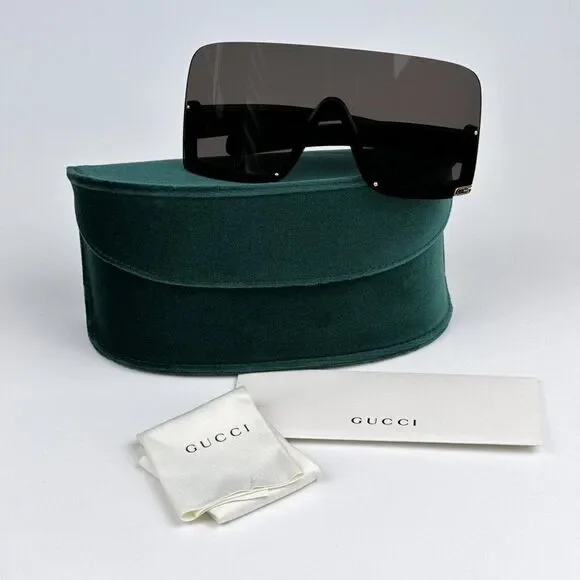 NEW Gucci GG1631S 004 Black Grey Shield Unisex Sunglasses GG 1631SBrand:GucciModel:GG1631S / GG 1631SColor Code:004Gender:Women / UnisexFrame Colour:BlackFrame Shape:ShieldFrame Style:Half RimFrame Material:Injection PlasticLens Color:GreyLens Material:Bio NylonSize:99X1X115100% UV ProtectionBRAND NEW and 100% AUTHENTIC!Made in Italy.FULL RETAIL GUCCI SET INCLUDES: 1. Glasses2. Case 3. Cleaning cloth with brand logo4. Authenticity card/certificateSAME/NEXT day shipping!