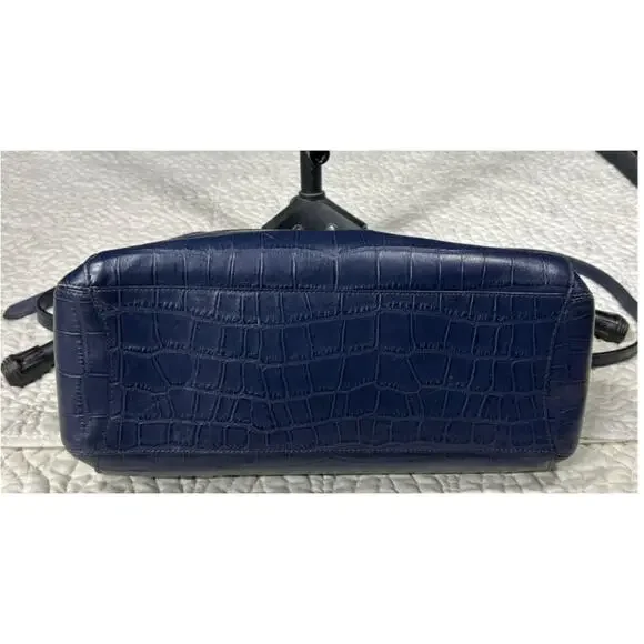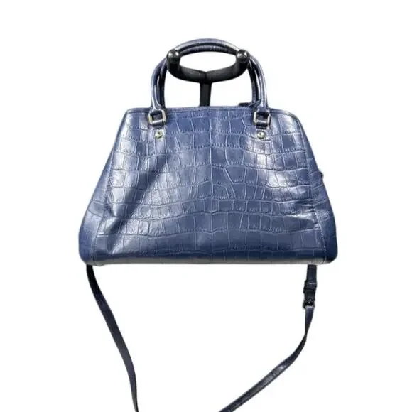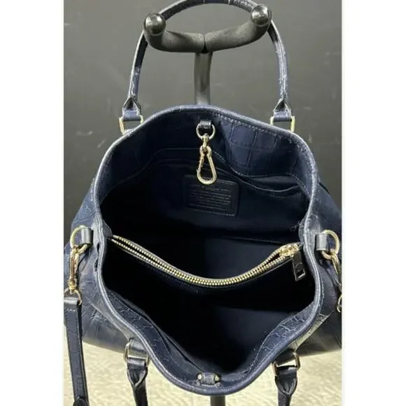 This gorgeous Coach satchel is crafted from embossed croc-patterned leather in a rich blue hue, offering a timeless and elegant look. Featuring gold-tone hardware, top handles, a removable crossbody strap, and a structured silhouette, this bag is both sophisticated and functional. The spacious interior is perfect for carrying daily essentials, making it a great choice for work, travel, or everyday wear.Condition: Excellent used condition with minimal signs of wearWhy It’s Special:Embossed croc leather for a chic and luxurious aestheticStructured design with both top handles and a crossbody strap for versatilitySpacious interior with multiple compartments for organizationIconic Coach craftsmanship and high-quality materialsRetail Price: $498 Coach embossed croc satchel, navy blue handbag, luxury leather bag, structured tote, crossbody satchel, designer purse, work bag, travel essentials, everyday carry, Mother's Day gift, spring wardrobe refresh, elegant handbag, navy satchel, leather satchel, coach satchel