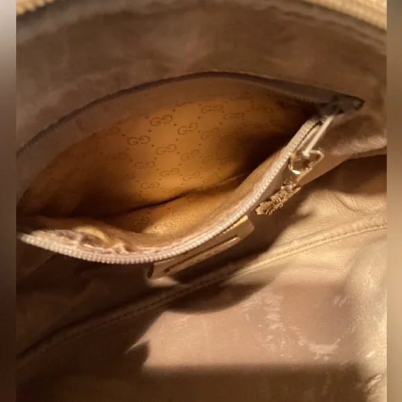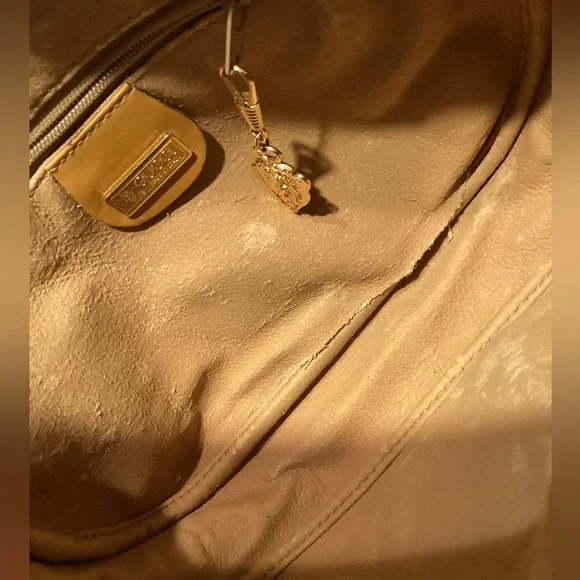 Questions? Leave a comment below!••Shoulder Strap is Fine. Picture is Touched up with Background••**Please Expand Pics for Closer Inspection ** Some Wear, Scuffs, Scratches or Marks to Body, Edges, Corners and StrapGold Tone Hardware - Some Scratches, WearInterior Marks and Wear**Also Lining is Pulling Away from Wall, with Some Peeling**Wiped Clean But Some Marks Remain