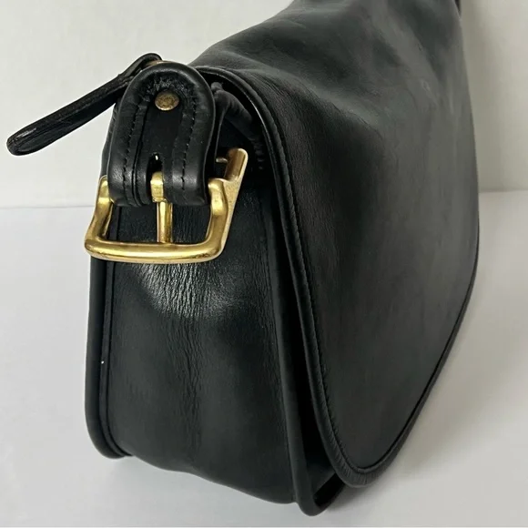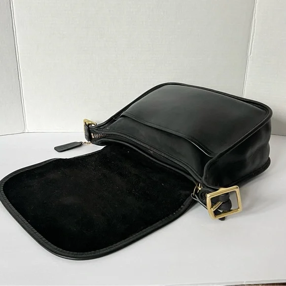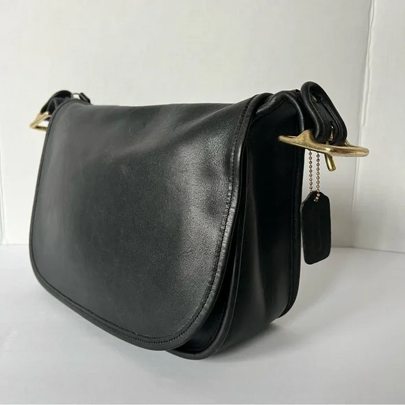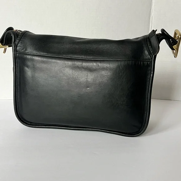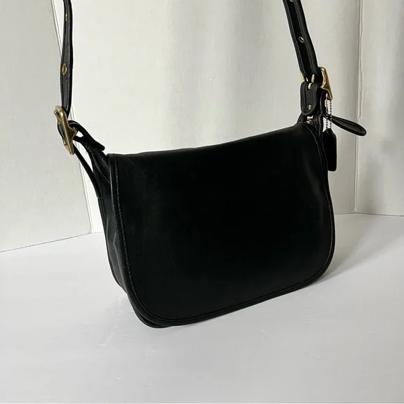 Vintage pre-owned Patricia Legacy Coach bag in excellent condition! No rips or tears. Strap is in perfect condition. It includes the original hang tag. Style - 9951Country made in - Costa Rica Year made -1999Color- BlackGlovetanned leatherInside zip and multifunction pocketsFlap closure, leather liningOutside slip pocketStrap with 25" drop for shoulder or crossbody wear11 1/2" (L) x 10" (H) x 3 3/4" (W)