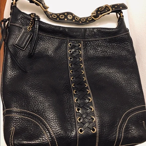 F06S-10400🔥*RARE* GORGEOUS COACH XL LARGE 2006 BLACK SOFT Pebbled LEATHER XL Tote Shoulder Bag with GORGEOUS BRASS Studded Hardware. IMMACULATELY CLEAN!EXCELLENT CONDITION!!! HARD TO FIND! Adjustable Strap. ROOMY & LARGE16” Wide, 14” HeightSolid black fabric interior, 3 pockets! 9” strap drop as pictured, Adjustable. Carefully stored, Comes with DustbagPurchased on Maui 🌺🌴🍍BEAUTIFUL BAG Thanks 🙏 for looking 😊