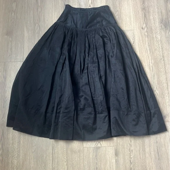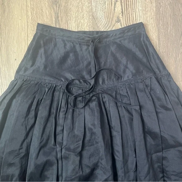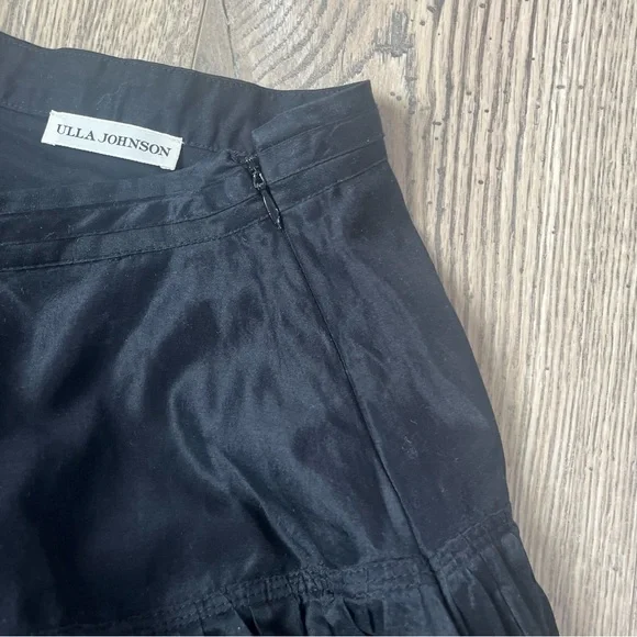 Ulla Johnson Silk blend A-Line Skirt Sz 0 BlackExcellent preloved conditin no flaws or stains.The most incredible a-line silk blenders skirt from ulla johnson. Top layer is sheer, faux tie at waist, side zipper closure. Has some body to it so it does give a beautiful flare out when on the body. Incredible piece that can go with so many styles Flat-lay measurments:12.5” waist 34.5” length