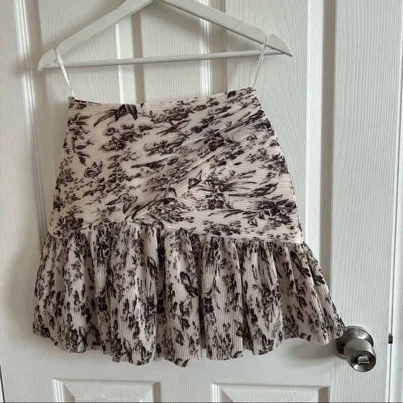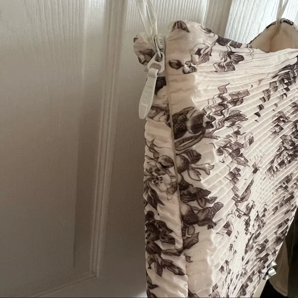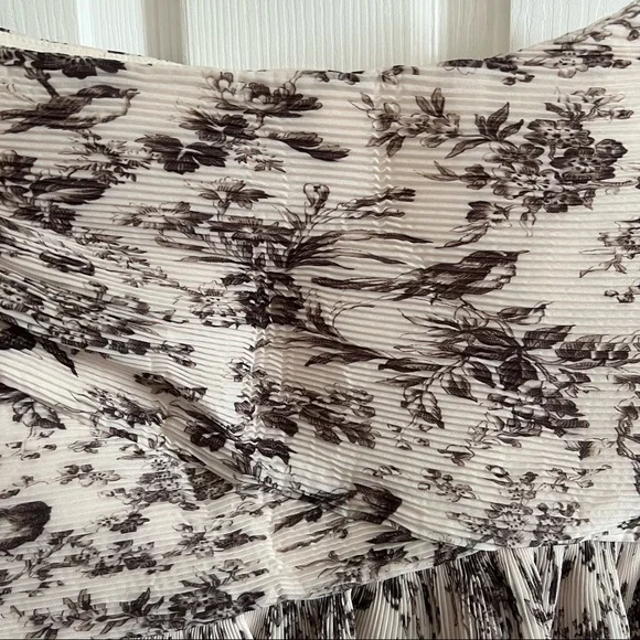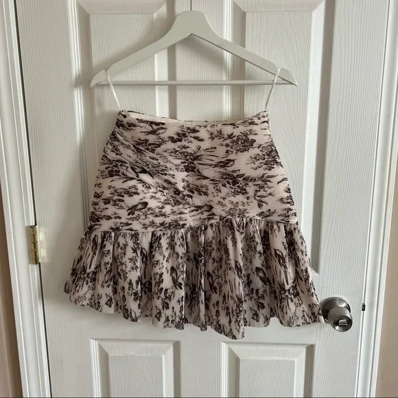 New without tags. The perfect pairing to the Zimmermann cropped toile blouse. Zimmermann size 0, US Size 4. Pleated mini skirt with hidden zipper and lined interior is a stunning addition to any closet. Slight wrinkles to some of the pleats in the back (shown), but I just haven’t gotten around to wearing this yet. This listing is for the skirt only, but I have the crop top listed as well!“The Australian label wraps this leg-lengthening mini in their elegantly pleated bird toile du jouy. Side zip closure.”
