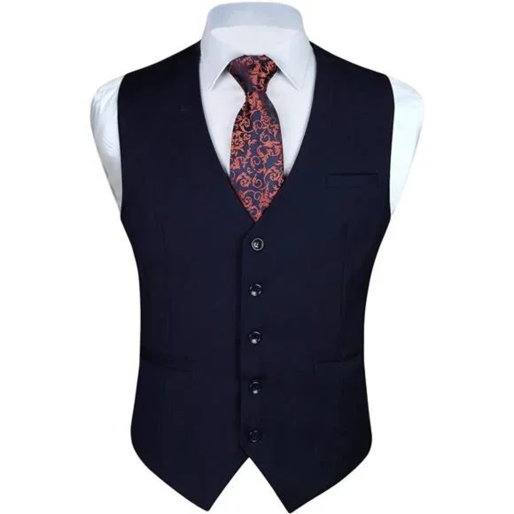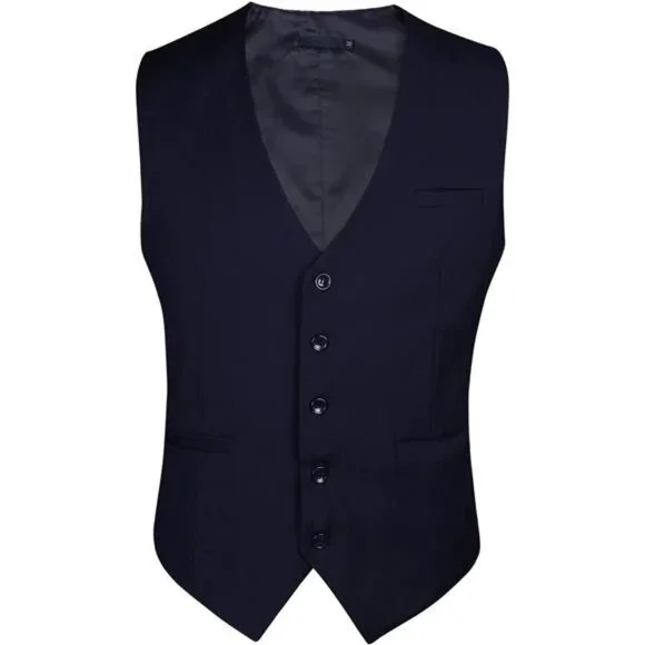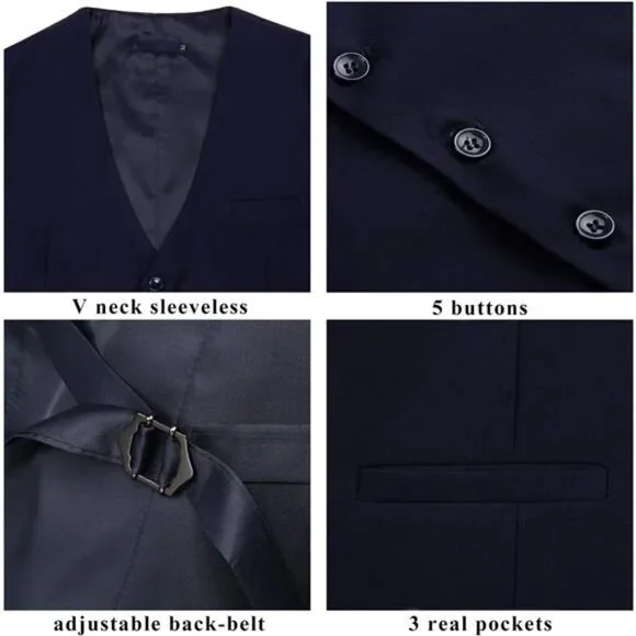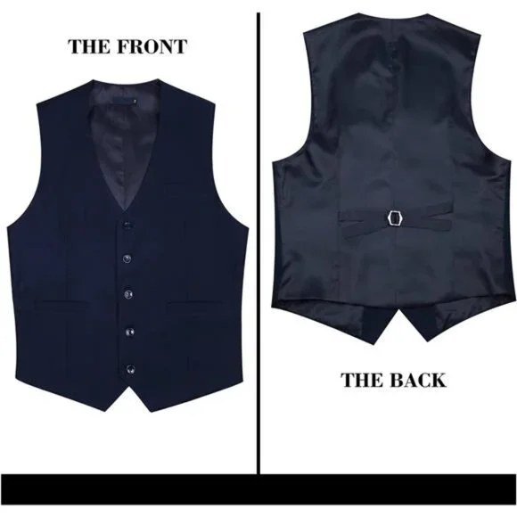 The material of vest is soft and lightweight.Premium Material, No fading, no distortion, anti-wrinkle, and quick dry; 8 optional sizes; The back adjustable Waistcoat offers a more accurate fit, makes you stand out in the crowd and look eye-catching and handsomeBusiness vest is designed with classic solid color, V-neck, 5-buttons closure and 1 real pocket on the front, 2 real side pockets.Classic Vest: The dress vest can also be given to friends, families, colleagues, Father's Day, Valentine's Day, Christmas, Halloween, Graduation ceremony, Wedding anniversary, Thanksgiving Day, or any man you care aboutClothing Match: Dry clean or hand wash suggested, and low iron if necessary; We are committed to providing every customer with the ultimate positive buying experience; Add this vest to your outfit for a modern and stylish look