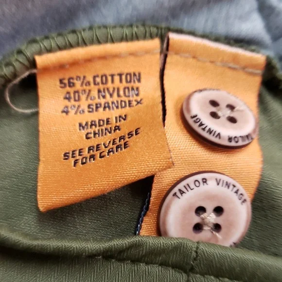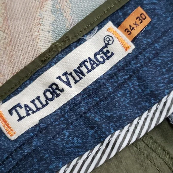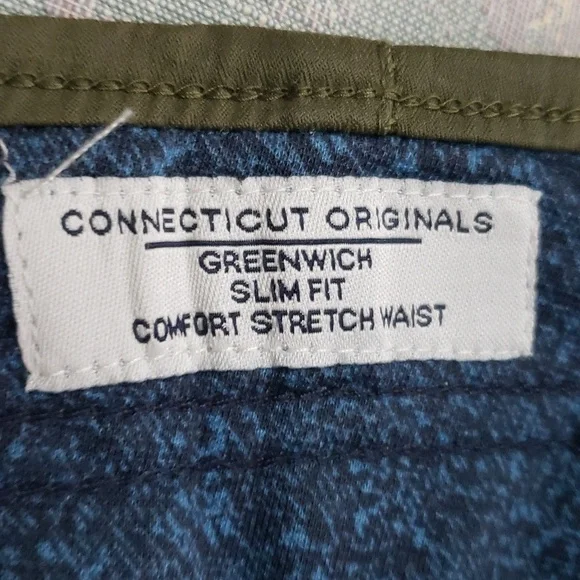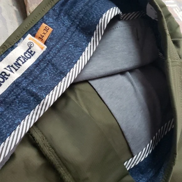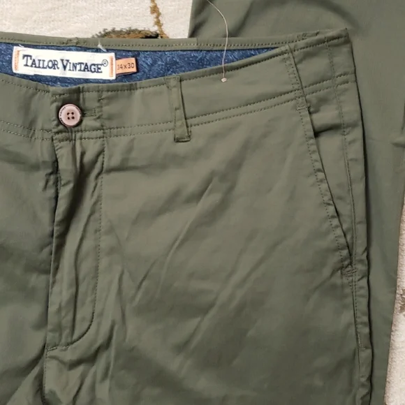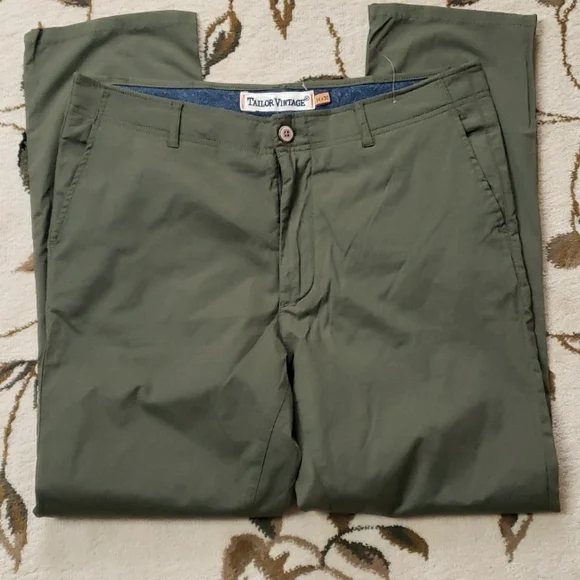 Tailor Vintage Connecticut Originals Greenwich Slim Fit Olive Pants Size 34 x 30Details:•Stretch fabric•Sits below waist•Slim through the hip •Slim leg•Flat frontFEATURES-Performance fabric-Just the right amount of stretch for comfort and mobility-Signature contrast pocket bags and trim-Comfort stretch waistbandThe Details With a water-repellent exterior, moisture-wicking interior, and lightweight stretch fabric, these sleek pants more than stand up to our tests. Features: zip-fly, two slant pockets, two rear welt pockets, jersey pocket bags.FABRIC & CARE-56% cotton 40% nylon 4% spandex-Machine wash, tumble dryNEW without tag.