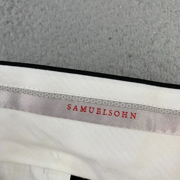 Up For Sale is an SAMUELSOHN Dress Pants Mens 44x33 BlackALL ITEMS shipped out Next Business Day w /Tracking Number!In good used condition. Check below for full description & photos.Measurements:Waist: 44 in.Rise: 11 in.Inseam: 33 in.Cuff: 09 in.If you're not sure about the fit, you can compare measurements to an item you wear most often.If you have any questions or concerns please feel free to message me. I try to respond to most messages immediately. Thank you for your interest!