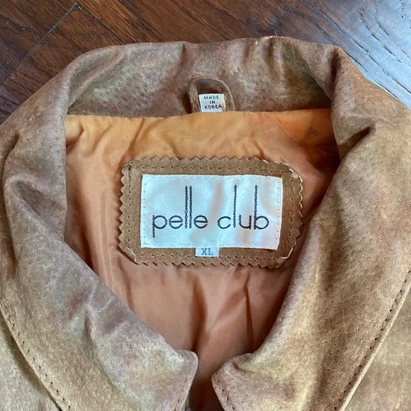 This vintage genuine leather jacket is in really good condition! There are a few minor wear marks or variations on the leather, but overall it looks great! It is a brand called Pelle ClubSize Extra LargeSee photos for measurements Zipper is functional4 outside pockets, 2 welt and two flapOne interior pocketNylon linedDry clean onlyMake me an offer, I’d love to make a deal with you!