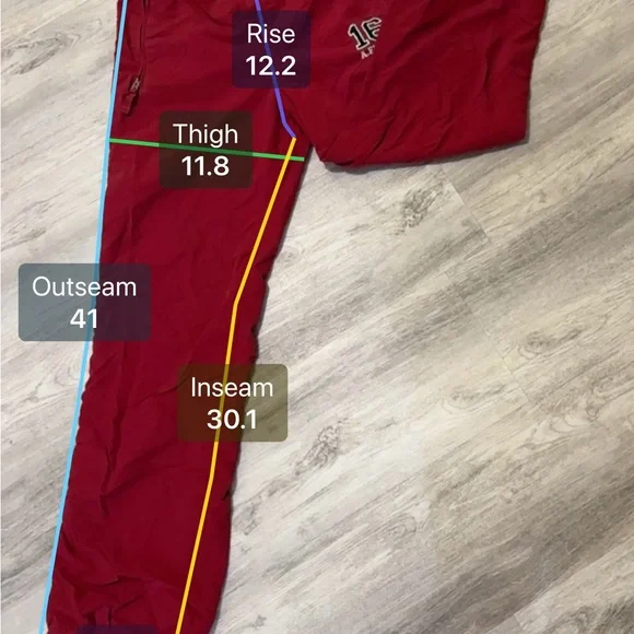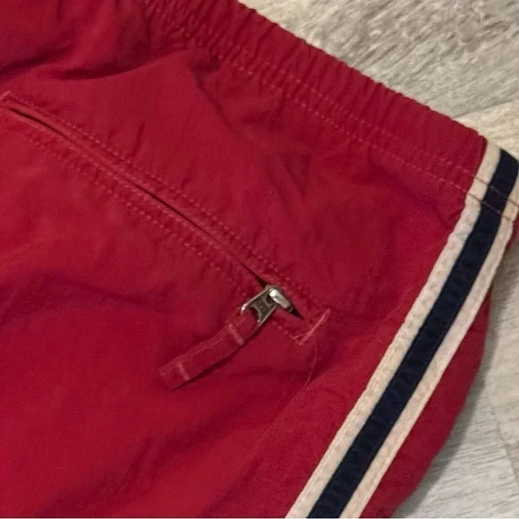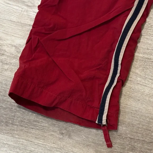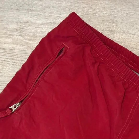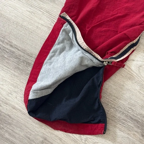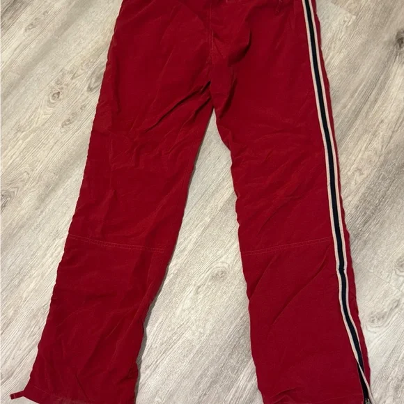 In excellent, clean, preowned vintage condition. These pants were only worn a handful of times if that. Please note there is very minimal (nearly unnoticeable) signs of wear on the back of the bottom edge of the pants. When being worn this is not noticeable.All zippers zip smoothly.No rips, no tears, no stains.Features- Lined with a soft cotton jersey type material Drawstring located on the interior Side pockets at the hipOne back wallet pocketSide zippers at the ankleStripe accent along the vertical edgeMen's size smallSee photos for approximate measurements in inchesFrom a smoke-free pet free home. Ships next day.