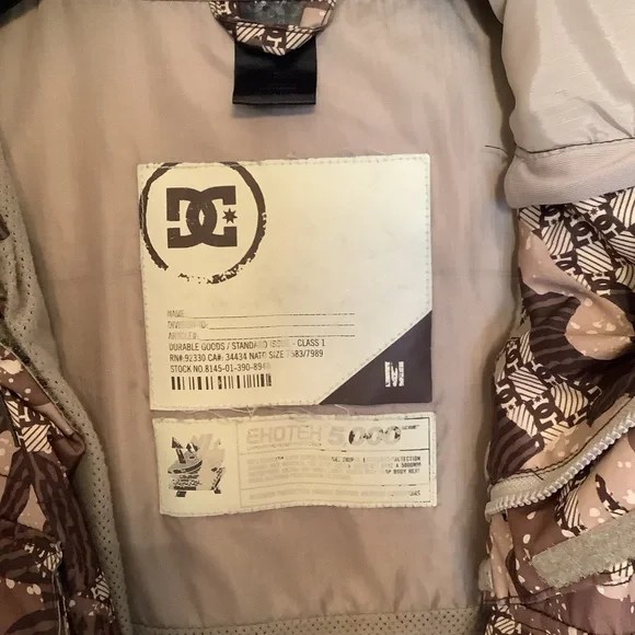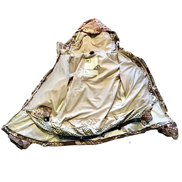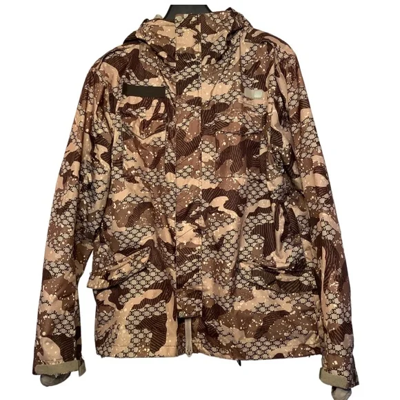 Size mediumTan, brown and crèmeIn really good preowned condition. Has some signs of wear but still in great condition.Both sleeve have some signs of wear - see pics Some of the Velcro spots have fuzz in them, I have removed most of it My son loved this jacket.Approximate flat measurements Shoulders 20”Pit to pit 25 1/2”Sleeve length 24”Jacket length 29 1/2”Smoke free home