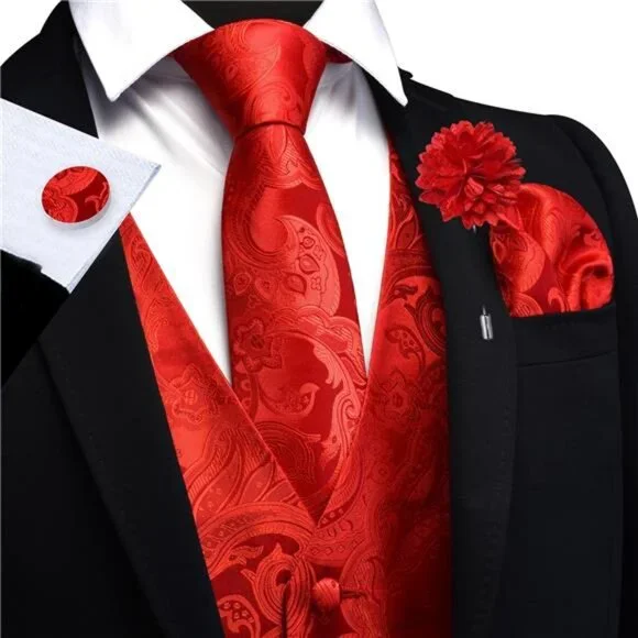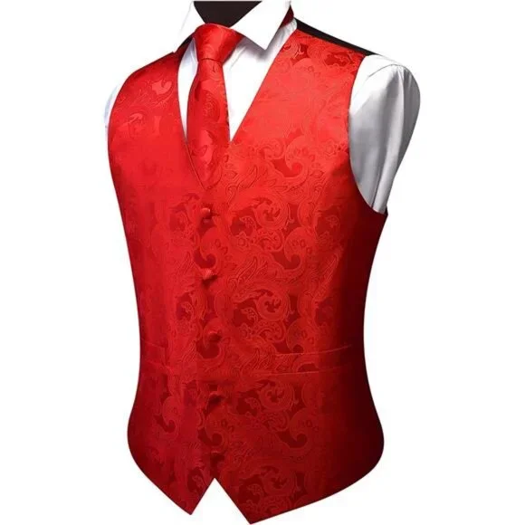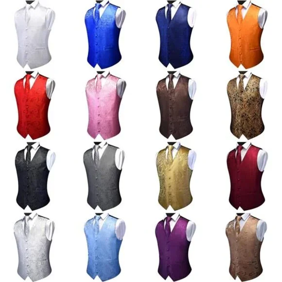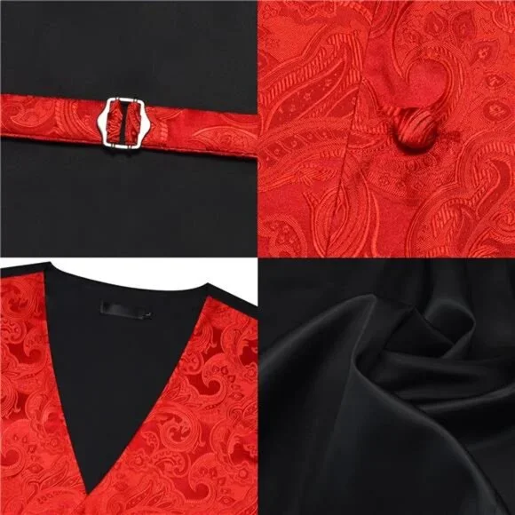 Material: 2400 Stitches Material makes the vest heavy weighted and elastic. No fading, no distortion, anti-wrinkle, and quick dry. Dry clean or hand wash is preferred. Please note that the washing water temperature should be lower than 40℃Package include: Vest+Tie+Bow Tie+Lapel Pin+Pocket square+Cufflinks+Tie ClipDesign: The suit vest is designed with fashion colors, V-neck Collar, 5 buttons and adjustable back buckle strap. Attention: Two pockets on each side can be cut into real pockets