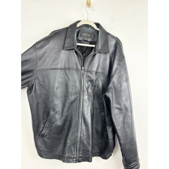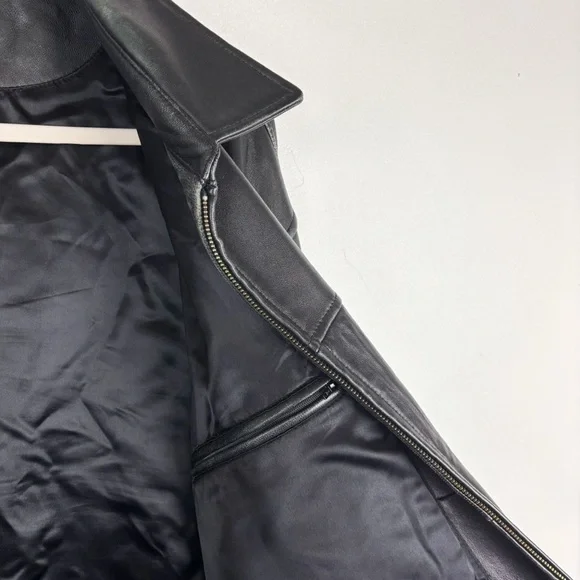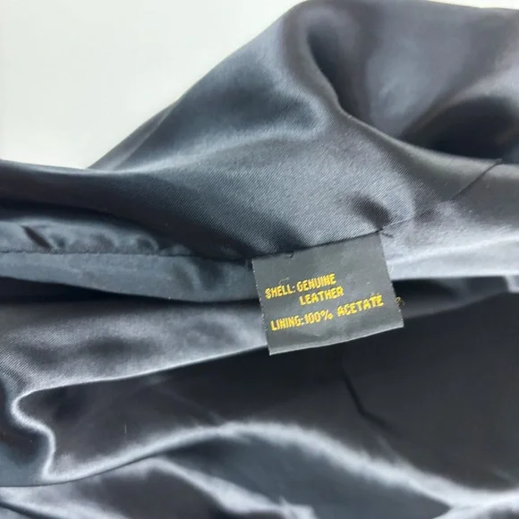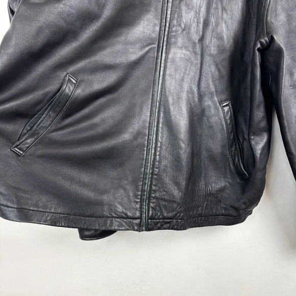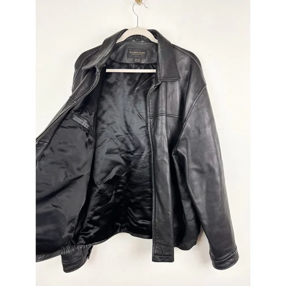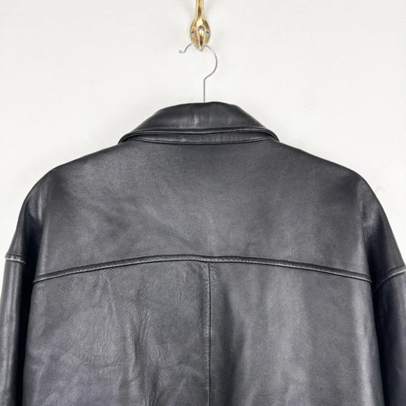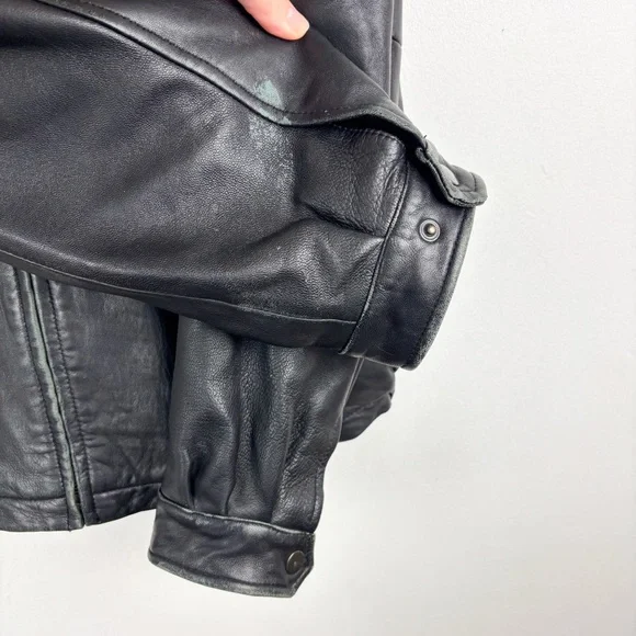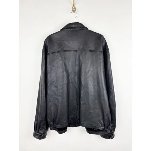 Size: Men’s XXLMaterial: Genuine leather, acetate lining Color: Black Condition: Great pre-owned vintage condition, has a scuff on the right sleeve and some light dimpling in the leather in one spot (all flaws pictured) Bundle with other things in my closet to get a discount! All Questions & Offers Welcome!