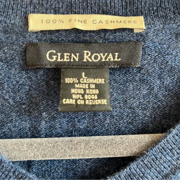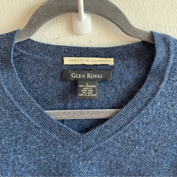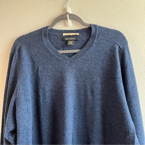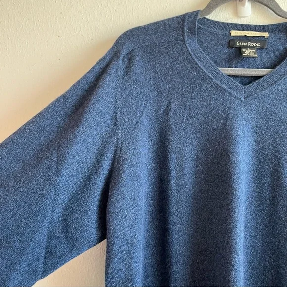 Vintage Glen Royal Sweater Heathered Blue 100% Cashmere V Neck Knit Sz L EUCThis sweater is a stunning addition to your wardrobe and it’s in impeccable condition. Features:- blue heathered color (blue-black) - long sleeves- v neck- knit- ribbed at neckline, wrists, hem- slightly high low - Length: 27-28”- Armpit to armpit 25”- 100% cashmere EUC - no flaws just preloved Ask with questions Bag BAIf this is your first time on , please use code LIZZYMCBOO to receive a $10 credit!Cashmere OfficeProfessional PreppyVintageKnitMenswearClassic