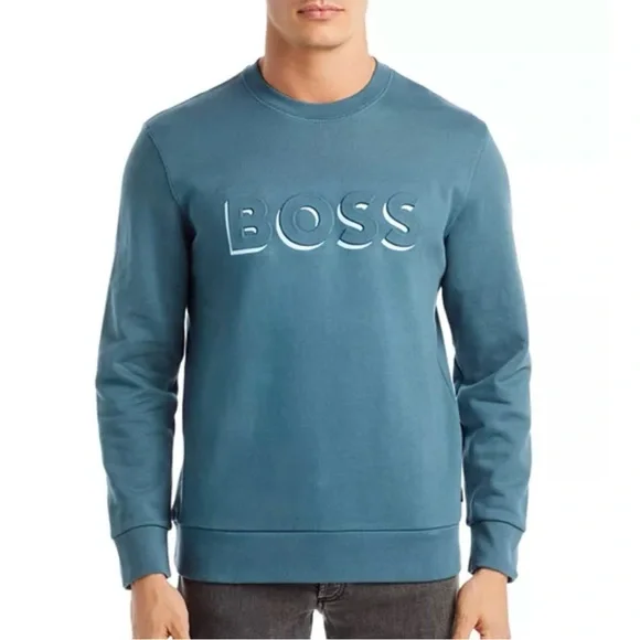 PRODUCT DETAILSWeb ID: 4542204Product Features• Crewneck• Long sleeves• Logo graphic at front• ImportedMaterials & Care• 100% cotton; collar: 98% cotton/2% elastane• Machine washShipping & Returns• Our Normal Gift Boxing is not available for this item.• This item may not be shipped to Hawaii, Armed Forces Europe, Federated States of Micronesia, Puerto Rico, Armed Forces Pacific, Guam, U.S. Virgin Islands, Northern Mariana, Alaska, Marshall Islands, Armed Forces Americas, American Samoa, Palau and the Philippine Islands.Experience the perfect blend of style and comfort with the Boss Blue Crewneck Sweater. This sweater features a subtle embossed logo across the chest, adding a touch of sophistication to its minimalist design. Crafted from premium materials, it offers a soft and smooth feel, making it an ideal choice for any occasion.