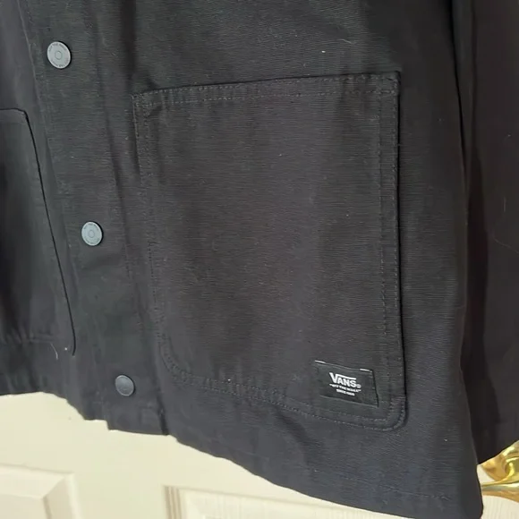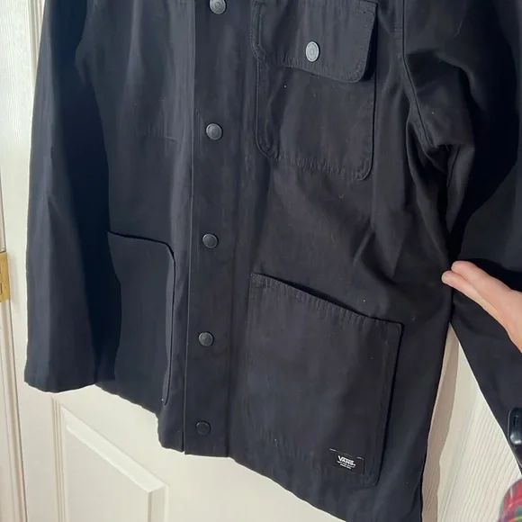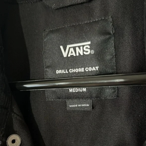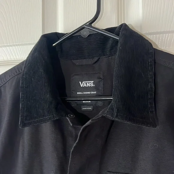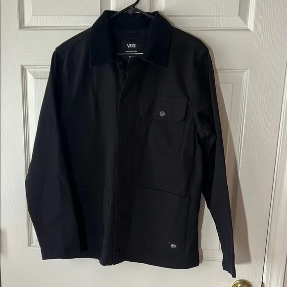 NWOT Vans Men's Drill Chore Coat Jacket Black, Medium No flaws! Perfect condition, never been washed.The Drill Chore Coat is an unlined chore coat with a corduroy collar, snap-front closure, dual-entry lower body pockets, and a woven label at the lower body. In stock photos, model is wearing a size Medium. Stay stylish and comfortable with this Vans Men's Black Jacket. Perfect for any occasion,and everyday wear, this jacket offers a sleek design and durable fabric… cotton canvas.Measurements in photos.
