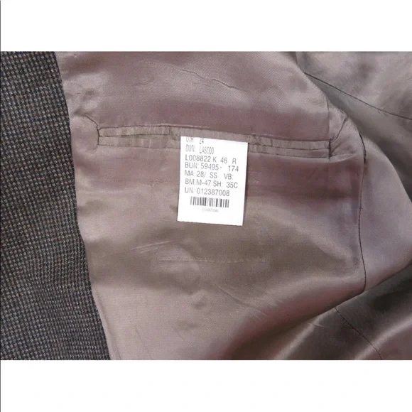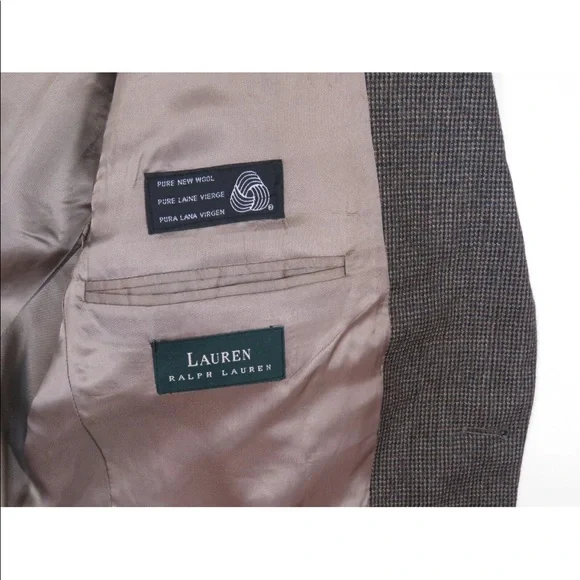 Description: NWOT Lauren Ralph Lauren 100% Lambs Wool 2 Button Blazer Sport Coat Jacket-Two button closure -Two front flap pockets-Left chest pocket-Single vented back-Four button cuffsSize (Check Measurements): Mens 46RColor: Brown and blackFabric: 100% lambs woolCondition: New Without TagsItem#: 66131Measurements are in inchesArmpit to armpit: 23 3/4"Back bottom of the collar to the hem: 31 3/4"Shoulder to shoulder: 20 3/4"Shoulder seam to end of cuff: 25"BUYING VINTAGE·We do our best to thoroughly inspect all items for any visible imperfections i.e., rips, repairs, holes, stains, etc. and note as such.·Please note vintage sizes are not always comparable to today's sizing. Please refer to the measurements in the description for a more accurate depiction of the true size. If an issue should arrive, please contact us prior to leaving a negative as we strive for providing excellent customer service.Please compare your measurements to the measurements provided in the listing description to ensure a proper fit. 62641