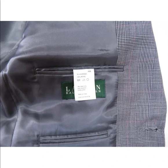 Description: NWOT Lauren Ralph Lauren 100% Wool 2 Button Blazer Sport Coat Jacket-Two button closure -Two front flap pockets-Left chest pocket-Double vented back-Four button cuffsSize (Check Measurements): Mens 40 RegularColor: Multi colorFabric: 100% woolCondition: New Without TagsItem#: 66116Measurements are in inchesArmpit to armpit: 20"Back bottom of the collar to the hem: 29 3/4"Shoulder to shoulder: 18 3/4"Shoulder seam to end of cuff: 24 3/4"BUYING VINTAGE·We do our best to thoroughly inspect all items for any visible imperfections i.e., rips, repairs, holes, stains, etc. and note as such.·Please note vintage sizes are not always comparable to today's sizing. Please refer to the measurements in the description for a more accurate depiction of the true size. If an issue should arrive, please contact us prior to leaving a negative as we strive for providing excellent customer service.Please compare your measurements to the measurements provided in the listing description to ensure a proper fit. 62620