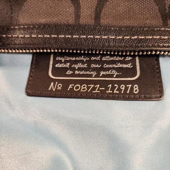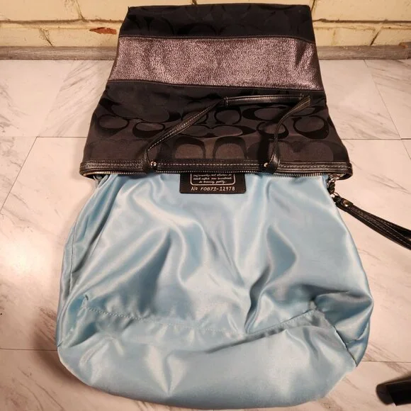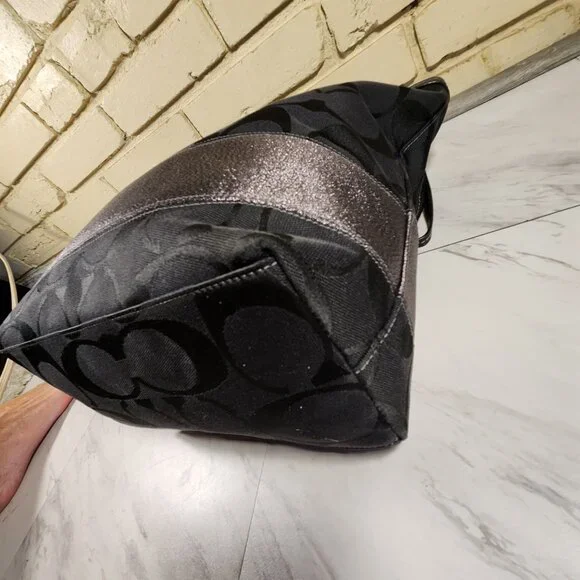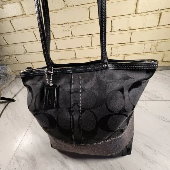 C19415x12x4Coach Black Signature C's Metallic Tote Bag PurseThis elegant black Coach bag is an exquiste blend of vintage charm and contemporary style. Designed with meticulous craftmenshipthis purse showcases the signature c's that adds a touch of nostaglia to your essentials. Crafted from high quality materials lurex, thispiece was built to withstand the test of time. The thoughtfully designed compartments and pockets offer ample storage for youressentials: allowing you to stay organized on-the-go. It is large in size & features zip top closure perfect for keeping your belongings secure, interior liner is a blue sateen fabric with two slip pockets and a zip.The double black leather straps allow easy carrying and comfort. Get ready to turn heads with this designer bag that compliments any outfit. Excellent ConditionI do accept reasonable offers....any questions feel free to ask.#Tote,#Coach,#Coachpurse,#luxury,#preppy,#colorful,#designer,#satchel,#prada,#canvas,#purse,#satin,#bag,#silk,#toriburch,#y2k,#Coachbag,#Bedstu,#LouisVuitton,#satchel,#black,#rare,#prada,#Cristiandior,#Gucci,#pocketbook,#Michaelkors,#Shoulderbag,#katespade,#satchel,#signature,#crossbodybag,#hobo,#Leather,#Metallic,#gucci,#channel,#sequins,#katespade,#leather,#contemporary,#preppy,#lightweight,#coachbag,#women,#rare,#vintage,#fendi,#Shoulderbag,#crossbodybag,#coatedcanvas,#silk,#satin,#fabric,#black,#purse,#Dooney&Bourke,#handbag,#spring,#summer,#Channel,#iacucci,