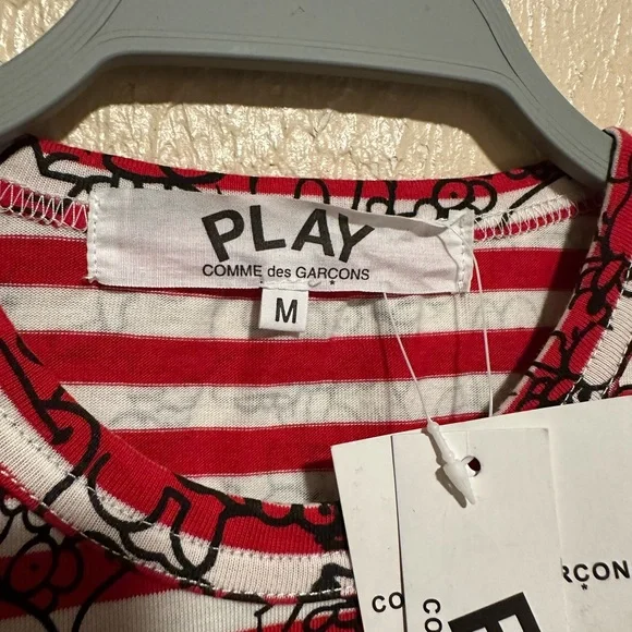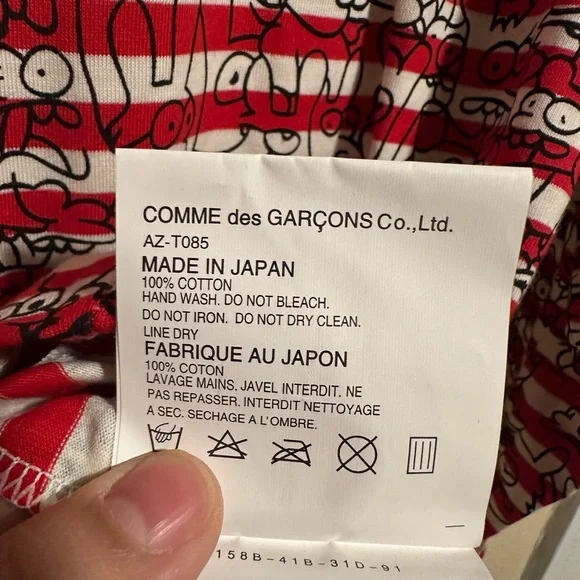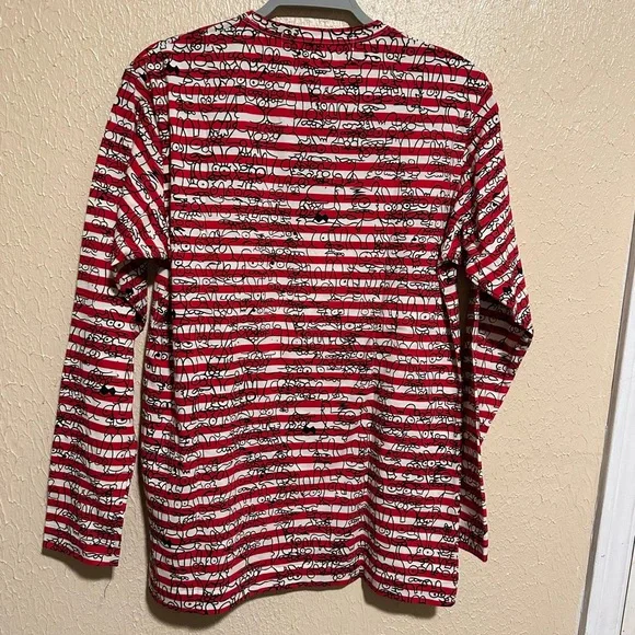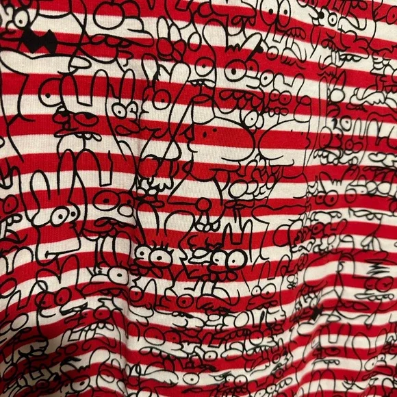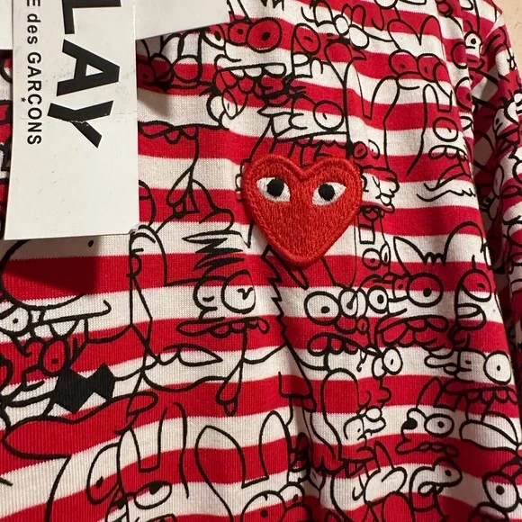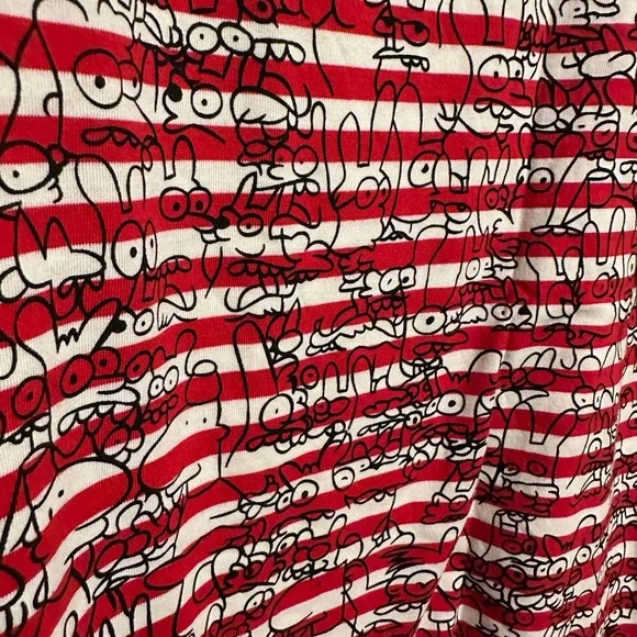 Comme Des Garcons cotton long sleeve striped tee with Simpsons characters illustrated throughout. This was part of collaboration between CDM and Simpsons Creator Matt Groening in2011. Embroidered CDG heart on left chestRare in red and white!Approximate measurements laying flatPit to pit 20”Length 27.5”Adult animation, adult humor, sitcom, satire, Simpson fan!Inventory-Blue Exp.