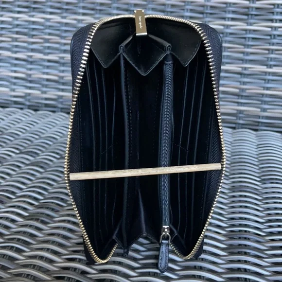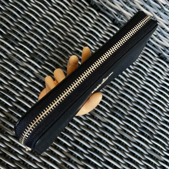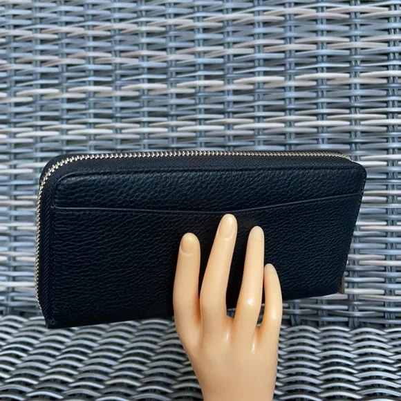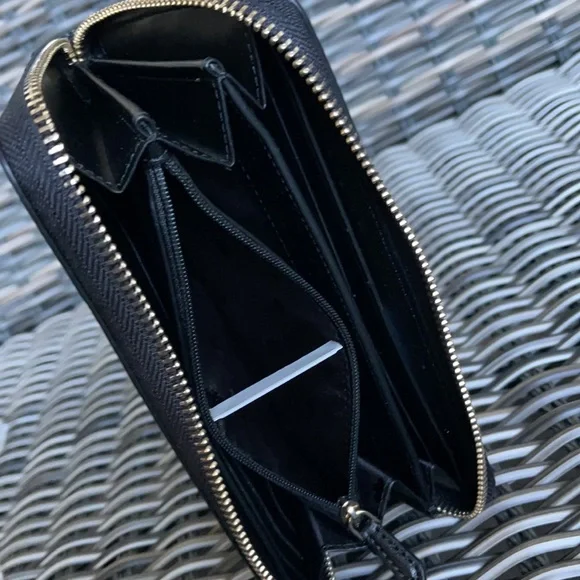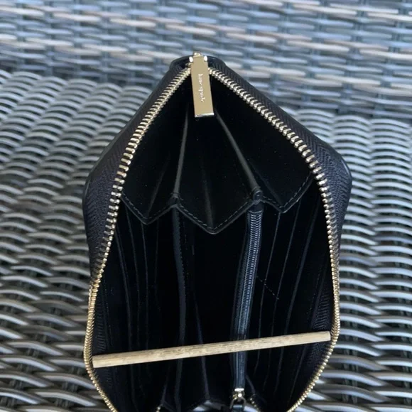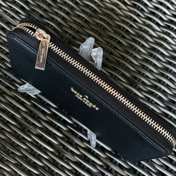 Kate Spade leila large continental wallet3.9" h x 7.7" wpebbled leatherksny metal pinmount logotwo way spade jacquard lininginterior: 12 credit card slots, 2 slip pockets, zip coin compartment, 3 gusset compartmentsexterior: slip pocket on frontzip closuredust bag not includedimportedstyle # wlr00402