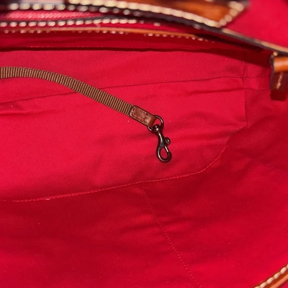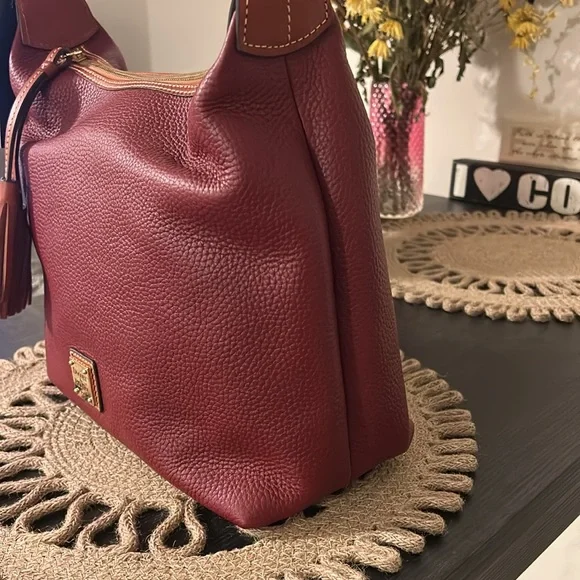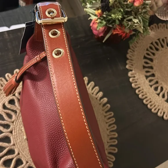 Gorgeous, ox, red pebbled, leather with gold tone hardware.Gorgeous tassel designAdjustable shoulder strap with beautiful hardwareClassic Interior red cotton lining with large zipper pocket and three slip pocketsZipper closure4 feet fixtures Comes with an authentic DB dust bag.Just a simply gorgeous and classy bag.Dimensions: 12“ x 11“ x 5“Questions? Leave a comment below!